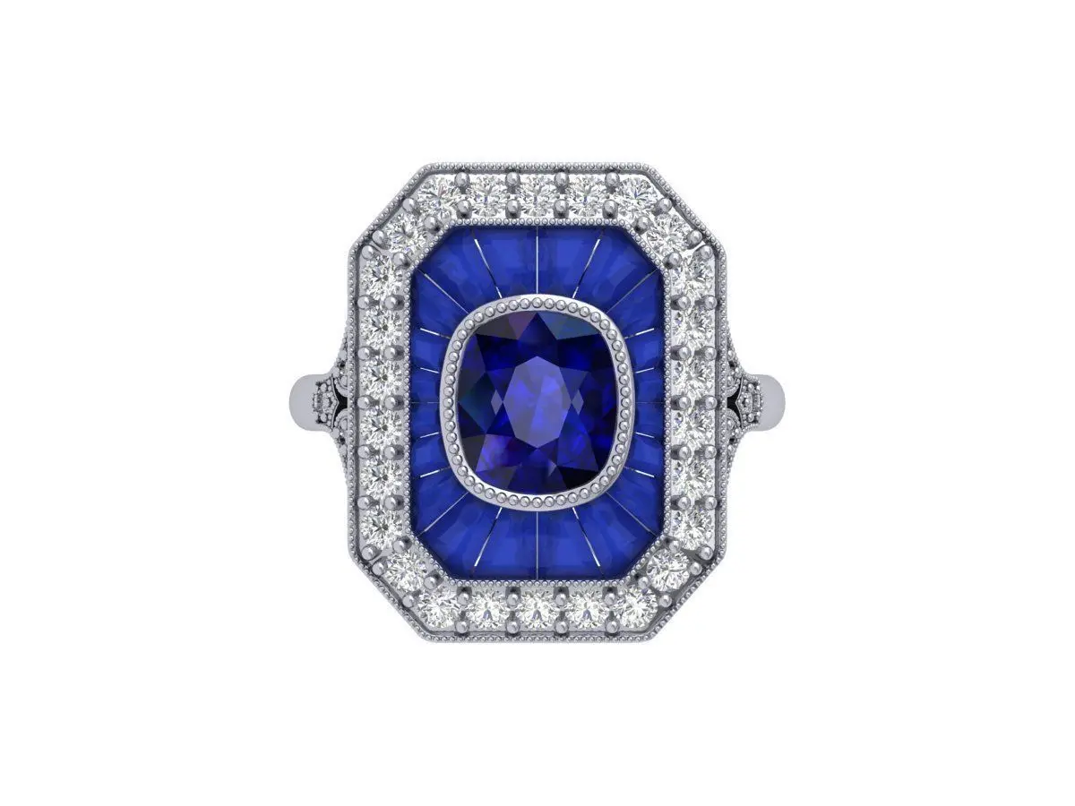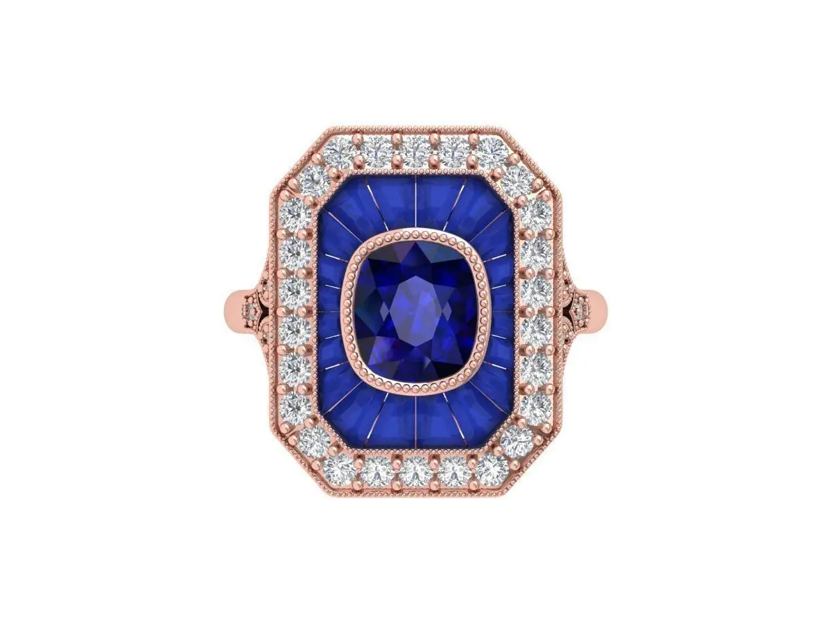 Home Catalog Cushion Solitaire Art deco Ring 3D print model
