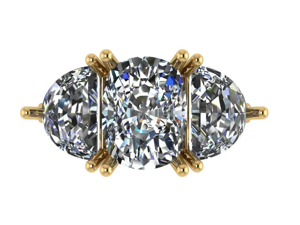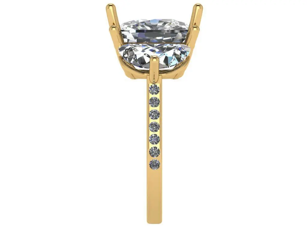 This exquisite cushion-cut ring features a mesmerizing center stone embraced by elegant half-moon diamonds on each side, enhancing its brilliance with a soft, curved glow. The pavé-set diamonds along the band add continuous sparkle, creating a seamless river of light that complements the ring’s romantic design. Perfect for those who adore timeless glamour with a touch of vintage inspiration, this piece is ideal as an engagement ring, anniversary gift, or a statement accessory. The cushion cut’s faceted warmth pairs beautifully with the half-moon diamonds’ smooth arcs, while the pavé detailing ensures all-day radiance.