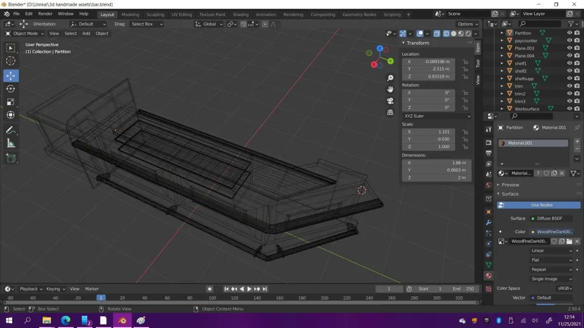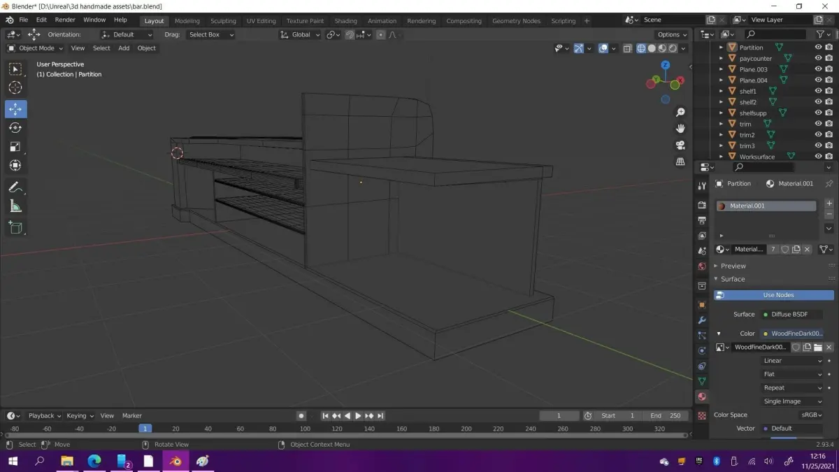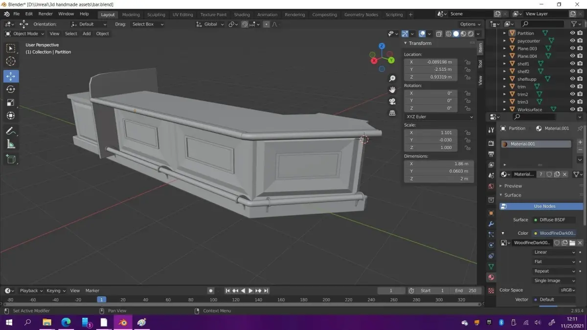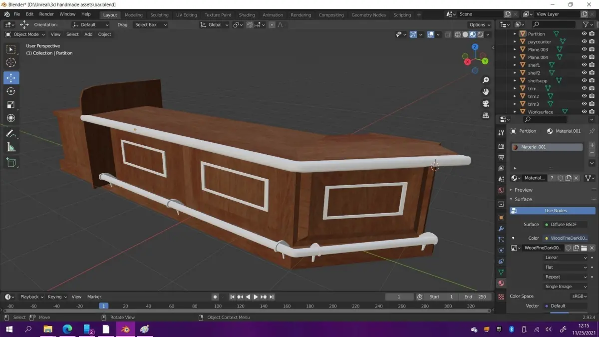 Custom shaped wooden bar. Game ready, low poly. UV mapped, unwrapped, and included.