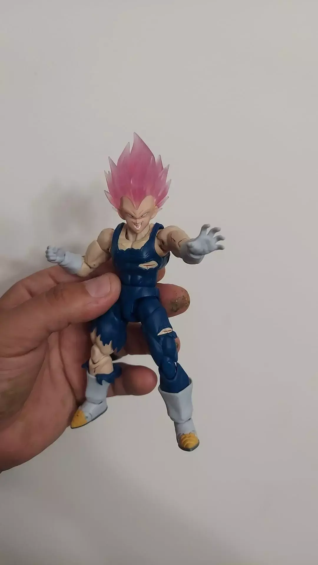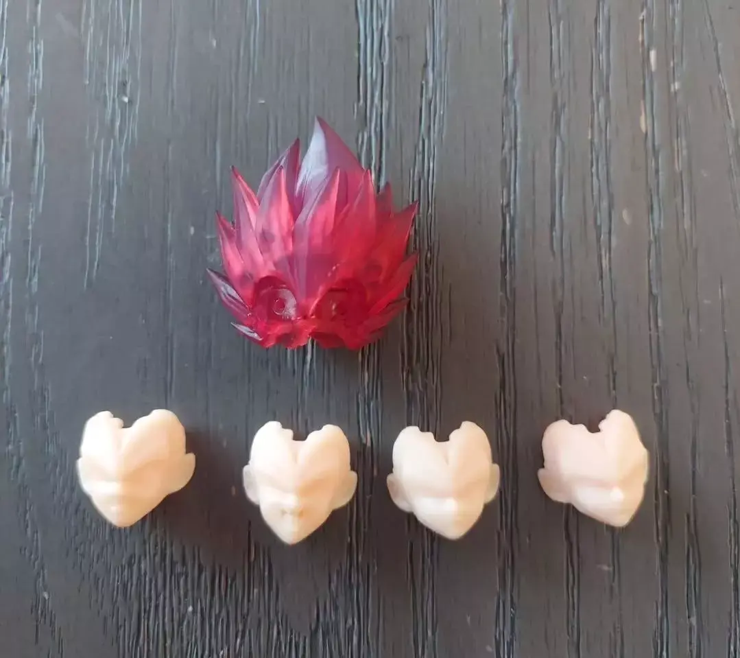This is a modified version fo the Beast Deities Vegeta head sculpt. I did some light modeling on the faces as well as adding a few new ones. 6 faces total, 1 hair and frong bang, hair socket and a custom peg to use the the head on the BHT Majin Vegeta Body. Make sure to heat up the hair before inserting the socket, it helps. I recommend using a mix of tough resin with Resione F39 flexible resin for the hair and Resione TH-BJD resin for the faces.
