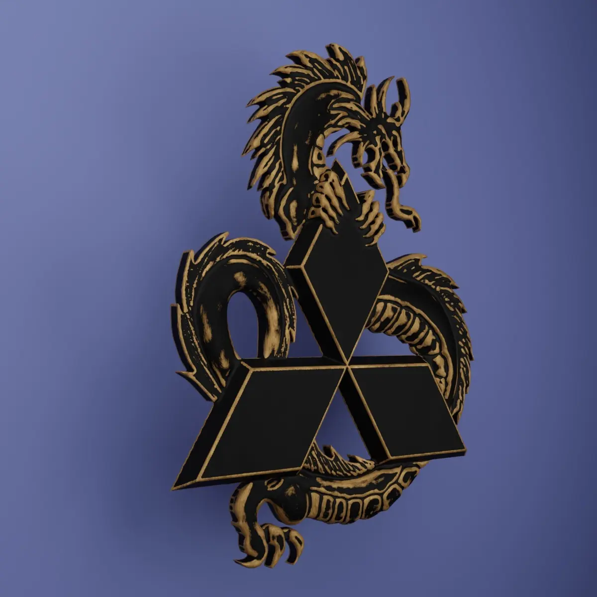 This 3D model replicates the Mitsubishi logo with an added impressive element - a dragon. The dragon skillfully entwines around the main logo, its majestic tail spiraling around it, creating a captivating rotating effect. The proportions of the original model have been preserved, making it ideal for 3D printing. This model will be a wonderful addition to collectors, Mitsubishi enthusiasts, or anyone who appreciates uniqueness and aesthetics.