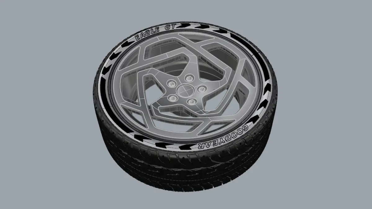 My custom rim design for car projects with silver covering on the front side for a possibility to play with color schemes. Also the model includes very good detailed tyre model.