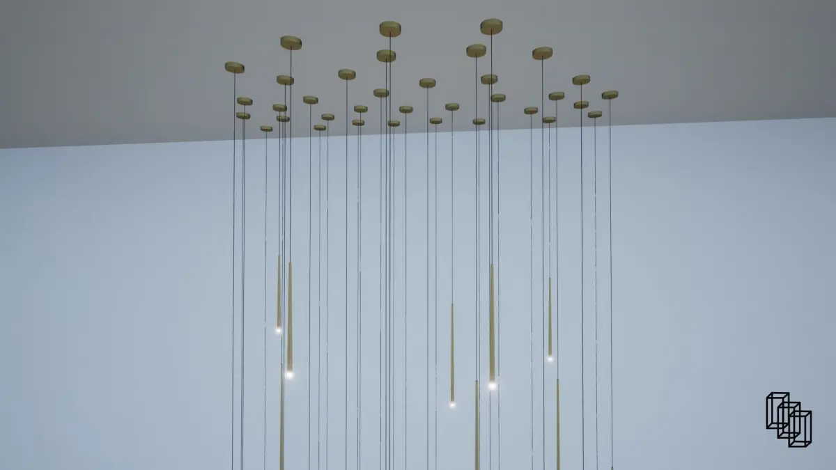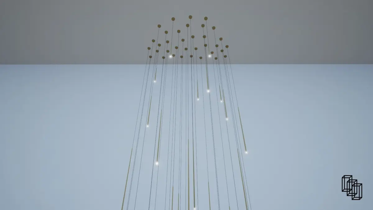 Custom Chandelier made out of many single pendants. Chandelier is 44ft tall great for long modern staircase lighting.