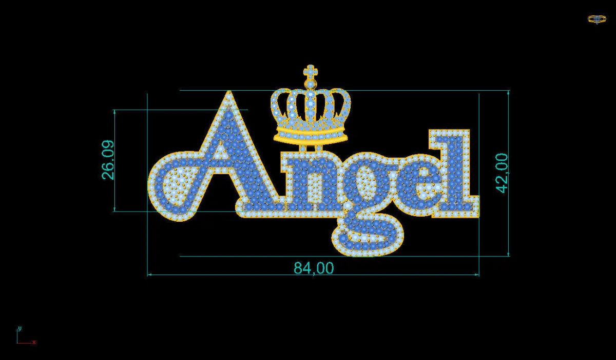 Design Elements:The pendant's primary feature is the word Angel rendered in a bold, solid script with a substantial presence. A detailed crown motif is centrally positioned above the lettering, adding a regal touch. Both the letters and the crown are entirely pave-set with numerous round diamonds of varying sizes, creating a highly brilliant and textured surface. The diverse range of diamond sizes is utilized to meticulously fill the contours of the design, ensuring a seamless sparkle. A robust, integrated bail is situated on the reverse of the piece, designed to accommodate a sizable chain.