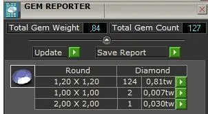 Gemstone Distribution by Size and Weight:1.20 mm x 1.20 mm Round: 124 stones, 0.81 tw1.00 mm x 1.00 mm Round: 2 stones, 0.007 tw2.00 mm x 2.00 mm Round: 1 stone, 0.030 tw