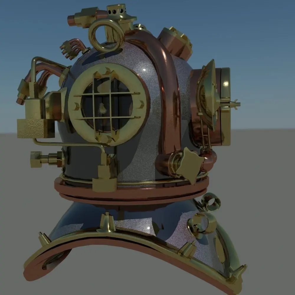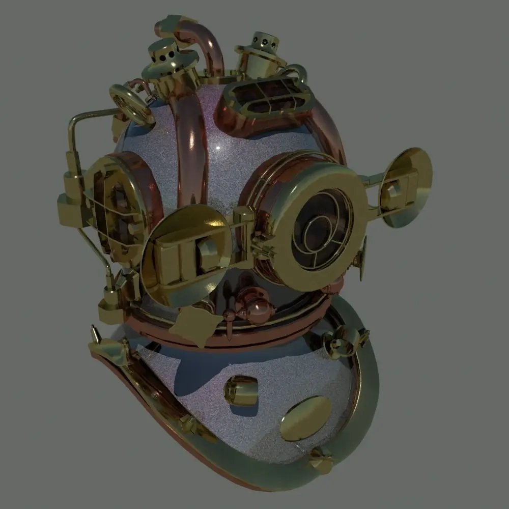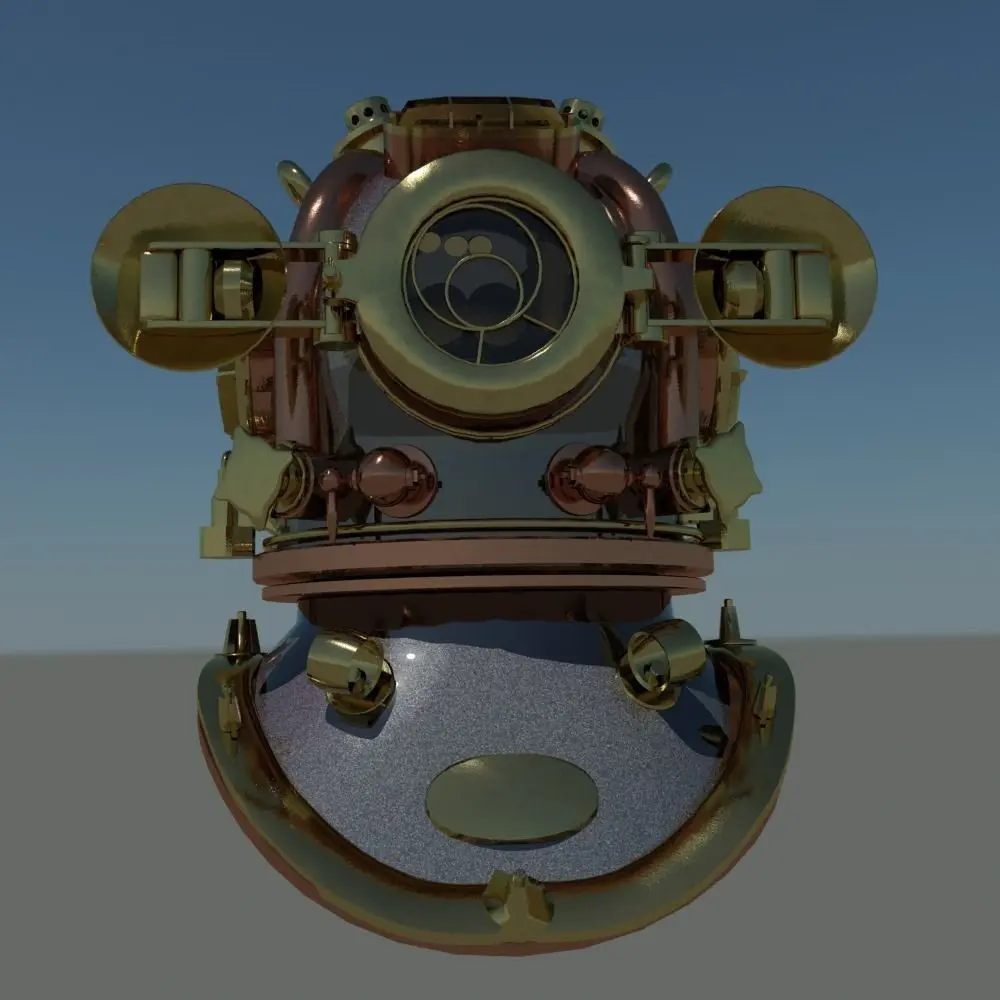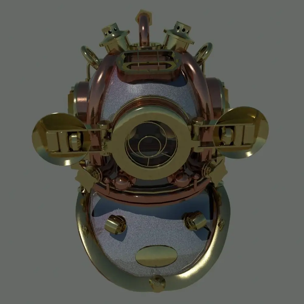 Customized Mark-V diving helmet, intended to render and close-up display, with materials.