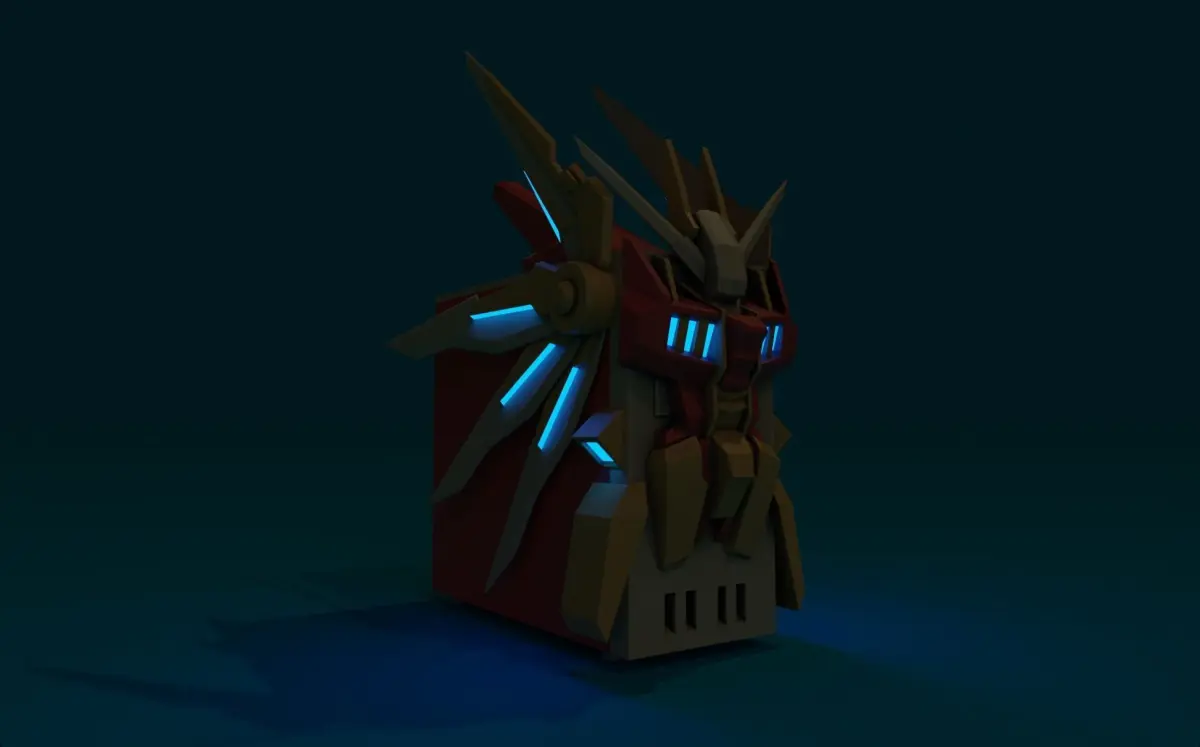 Custom pc case gundam mech cyber style computer lowpoly rgb