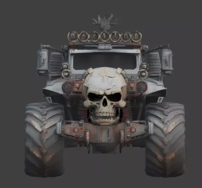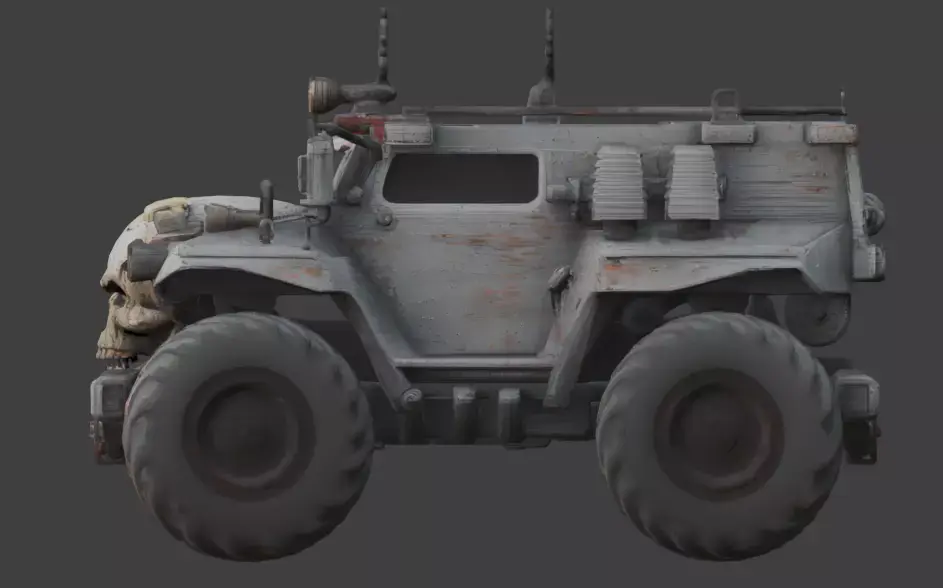 Tagscustom car, interceptor, tactical vehicle, 3d model, game asset, weathered metal, oversized tires, rugged, off road, realistic car, custom vehicle, cinematic prop, 3d prop, armored car, wasteland car, automotive design, heavy car, specialized vehicle, stylized car, rugged interceptor