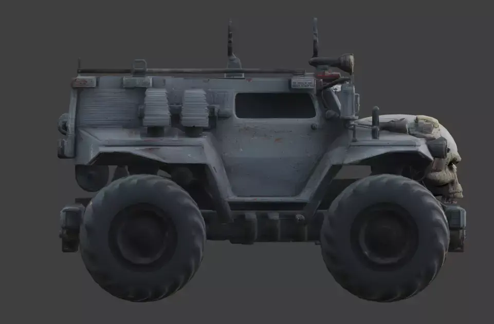 Expertly crafted for use in game development and cinematic renders, the model includes hyper-realistic PBR textures, such as mud-caked oversized tires, weathered mechanical components, and realistic paint cracking. With its roof-mounted high-intensity light bar and heavy-duty suspension, this asset is perfect for creators looking for a high-impact vehicle in tactical, wasteland, or custom automotive environments.