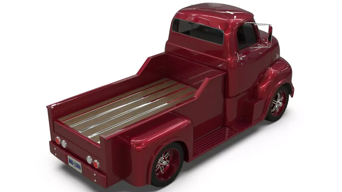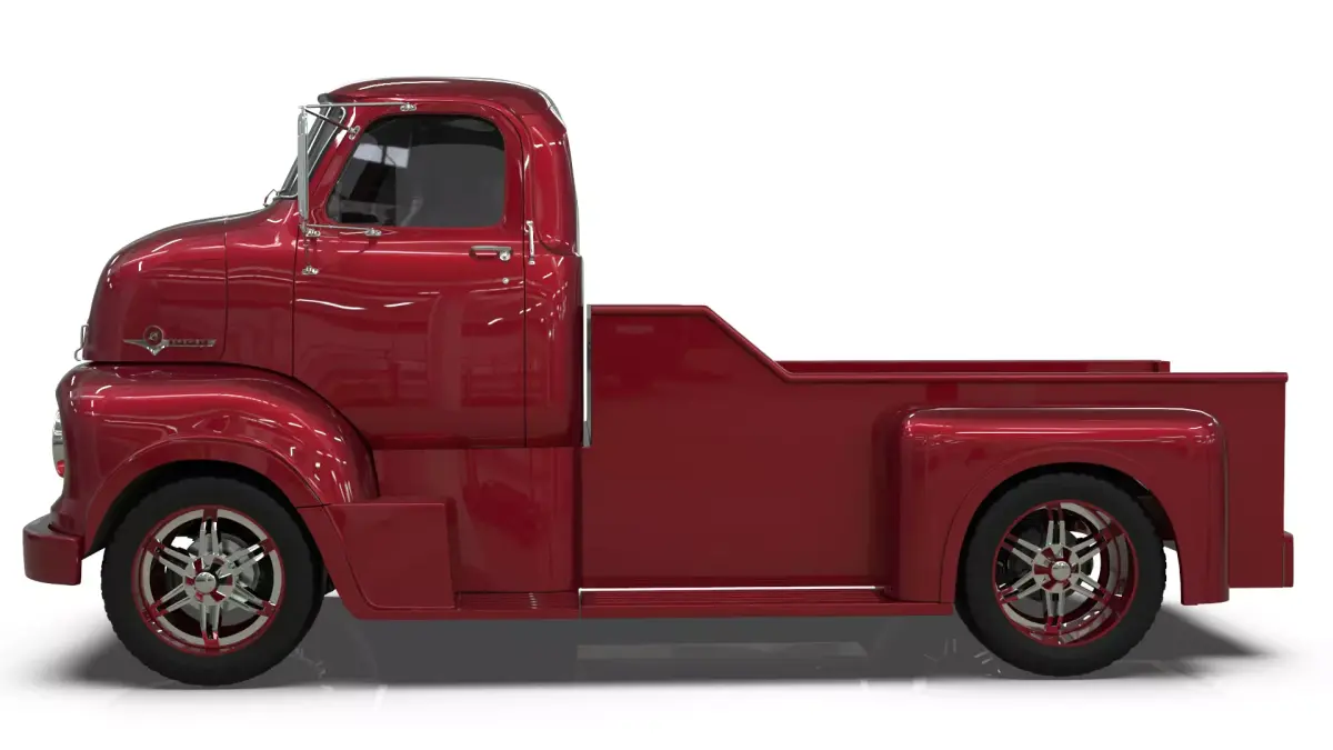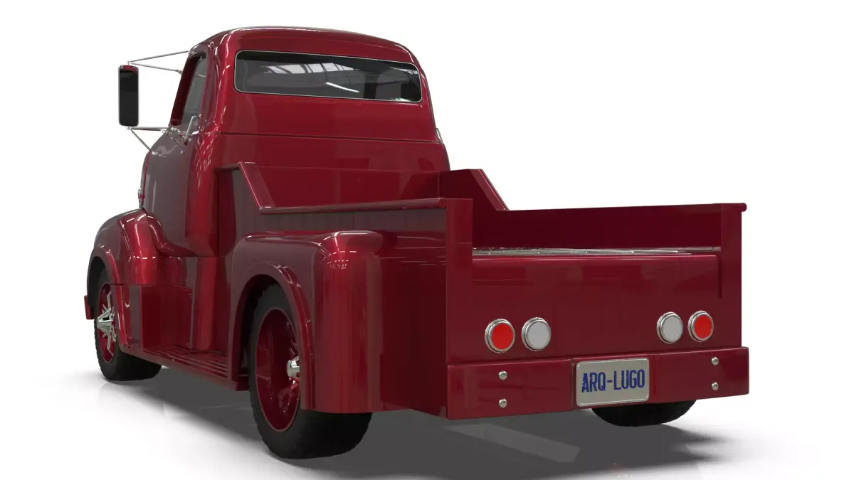 This unique 3D model presents a custom 1950s Cab-Over-Engine (COE) Pickup Truck, creatively fused with modern luxury rims for a distinctive vintage-modern aesthetic. Meticulously modeled in Blender from detailed blueprints, this asset is optimized for digital projects including video games, architectural visualizations, film productions, and real-time simulations.