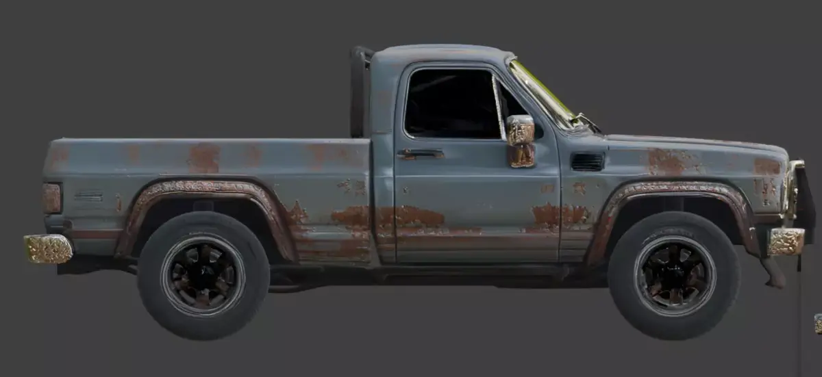Weathered PBR Materials: The asset utilizes a professional PBR (Physically Based Rendering) workflow to accurately simulate light interaction with rusted metal, weathered rubber, and glass.