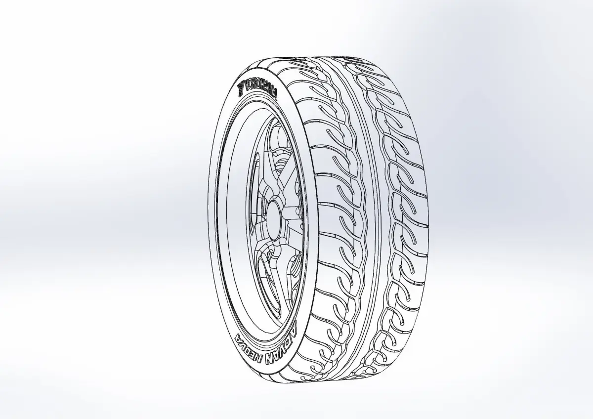 3D-printable wheels (rims and tyres separately) for your scale- or RC model . Rims style - Budnik Murok II, 18x8; Tyres - 235/40 R18 with a detailed tire tread pattern and inscriptions on the tire sidewalls