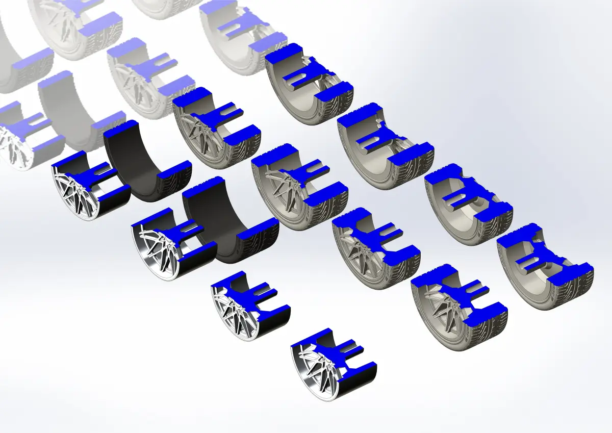 The model is offered in several versions - tire and rim separately and as one body, and with through holes between the spokes and with muffled ones - if higher strength is required