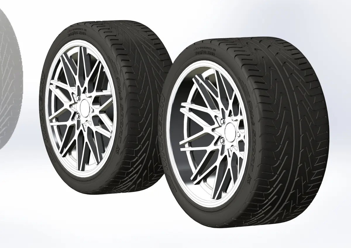 3D-printable wheels for your scale model . Rims style - Foose Phoenix, 19x9 - front, 19x11 - rear; Tyres - 245/35 ZR19 - front, 305/30 ZR19 - rear, with a detailed tire tread pattern and inscriptions on the tire sidewalls