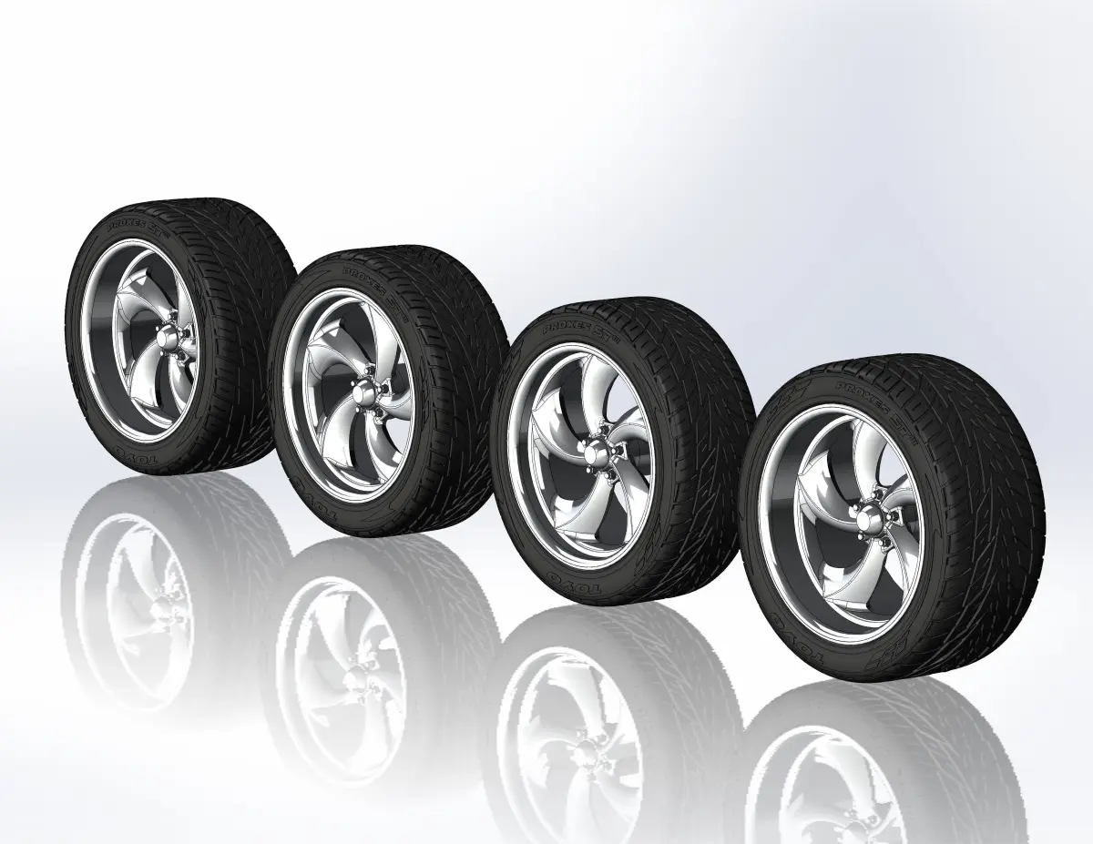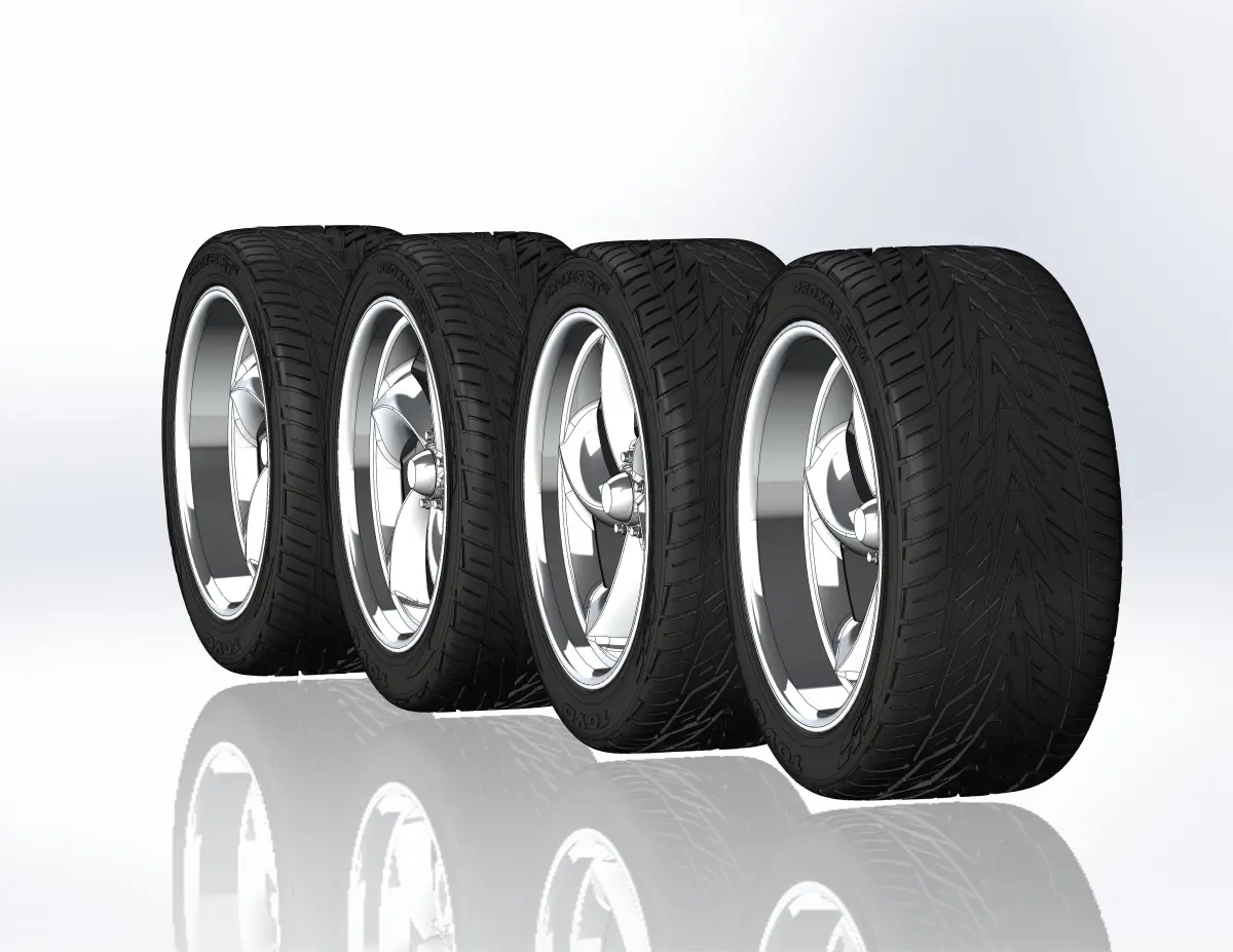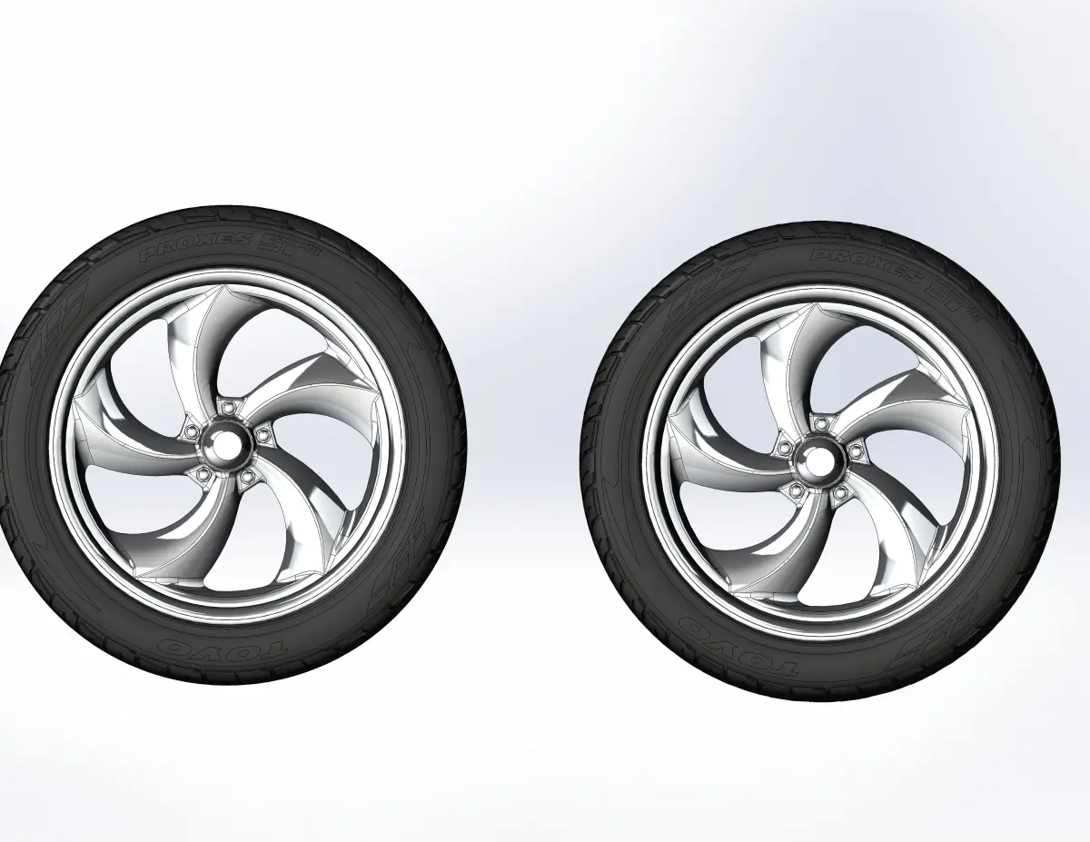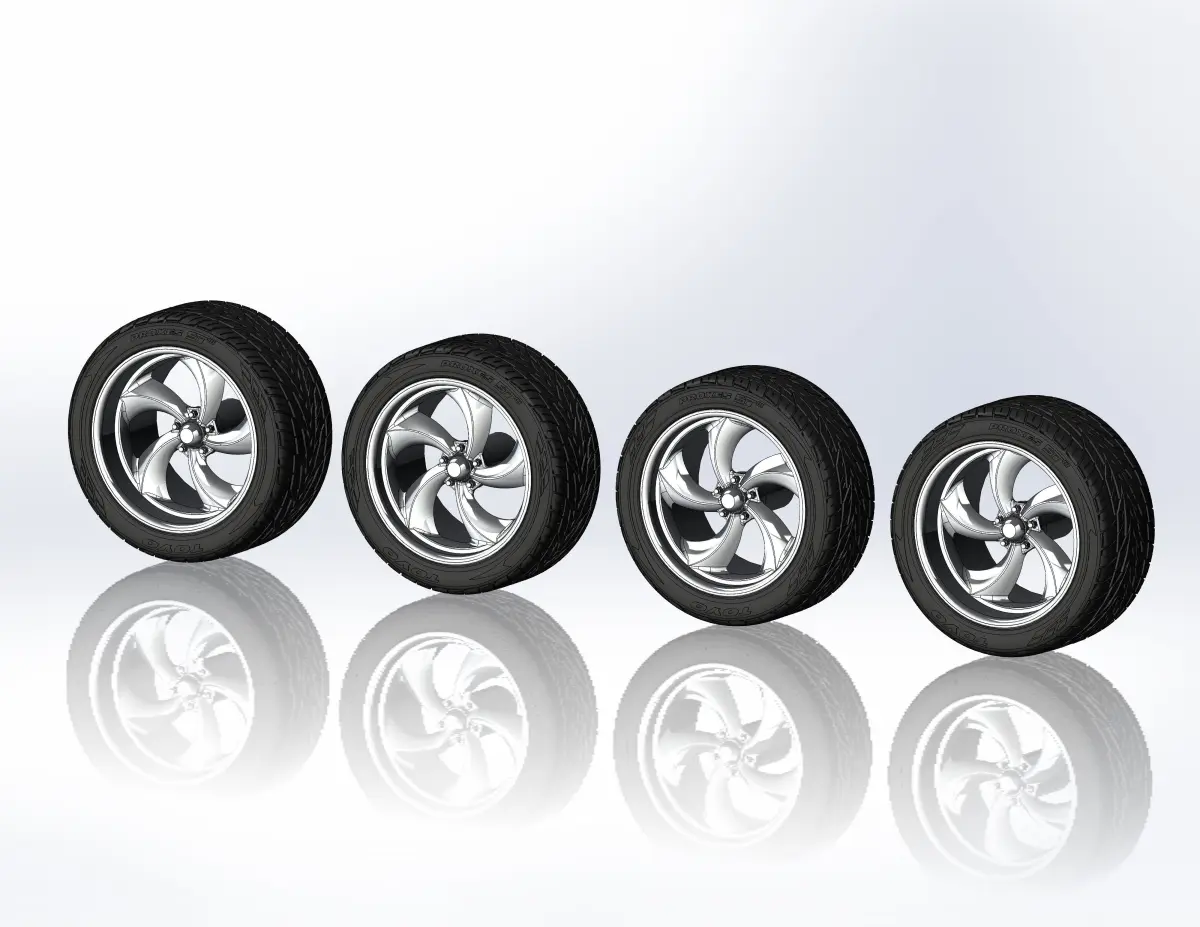 3D-printable wheels (rims and tyres separately) for your scale model . Rims style - American Racing VF489, 20x9.5 - front, 20x11 - rear; Tyres - 275/40 ZR20 - front, 315/35 ZR20 - rear, with a detailed tire tread pattern