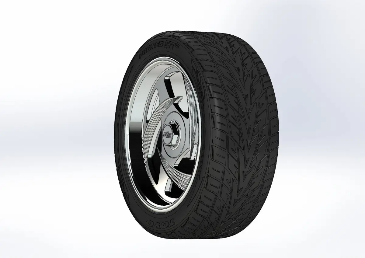 3D-printable wheels (rims and tyres separately) for your scale model . Rims style - Hot Rods by Boyd ULT1, 20x9.5; Tyres - 275/40 ZR20 with a detailed tire tread pattern;