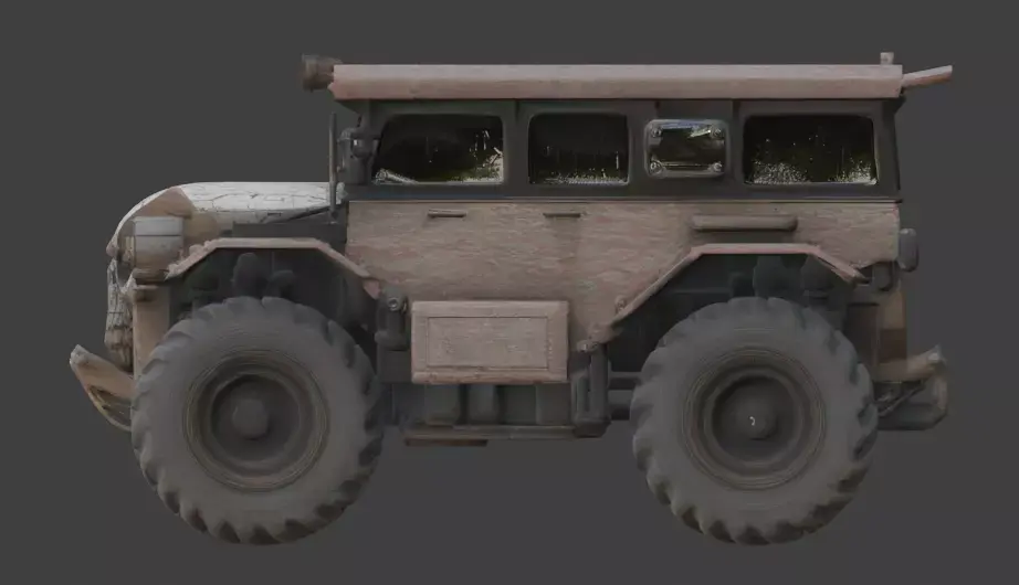 Expertly crafted for game development and cinematic renders, the model includes advanced PBR textures that capture deep oxidation, mud-caked oversized tires, and weathered armor plating. With its roof-mounted high-intensity light bar and heavy-duty suspension system, this car is an ideal centerpiece for creators building rugged survival, wasteland, or specialized automotive environments. The model is provided on a clean, isolated background for effortless integration.