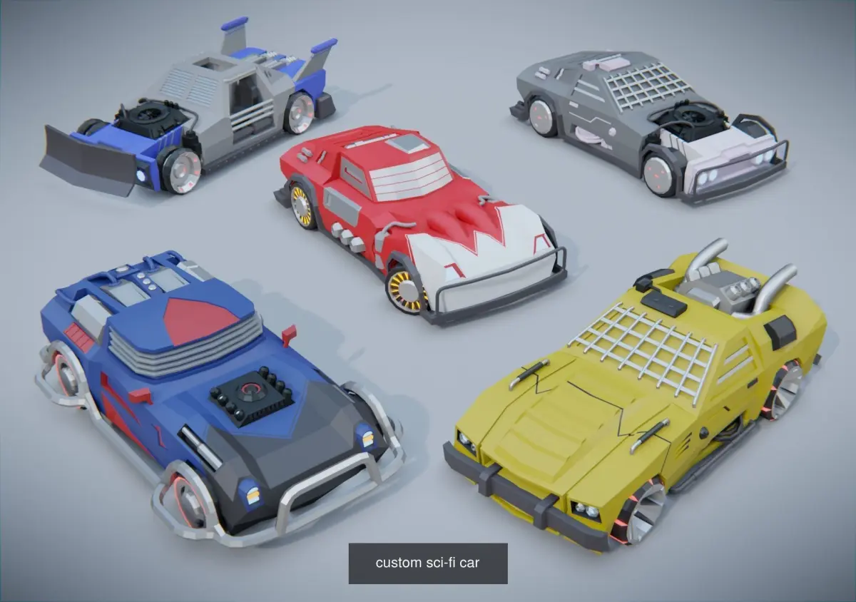 1- blender file with have 19 parts and all parts work together (5 front 6 mid 4 back and 4 bases )