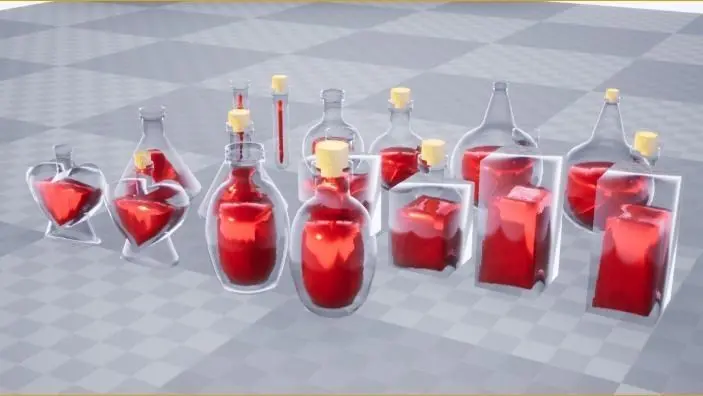 A very easy to customize potion variety pack that includes a small potion, medium potion, large potion, vase potion, square potion, large square potion, triangle potion, heart potion, and each having a version with and without a cork.