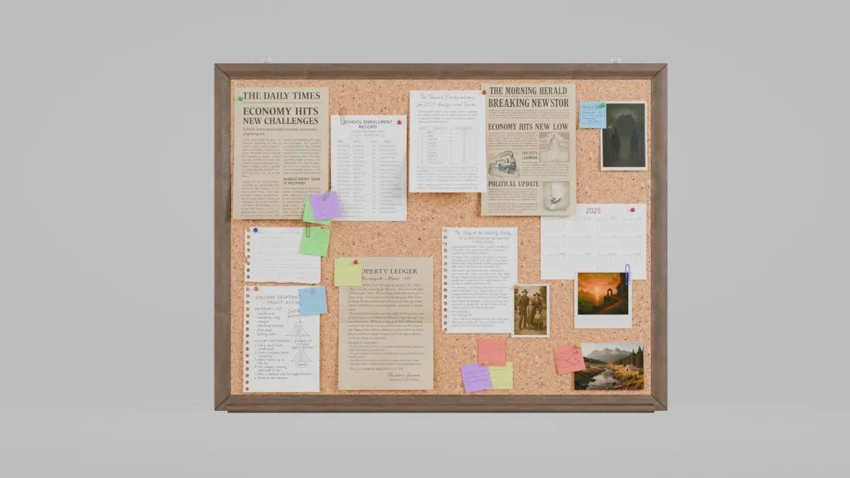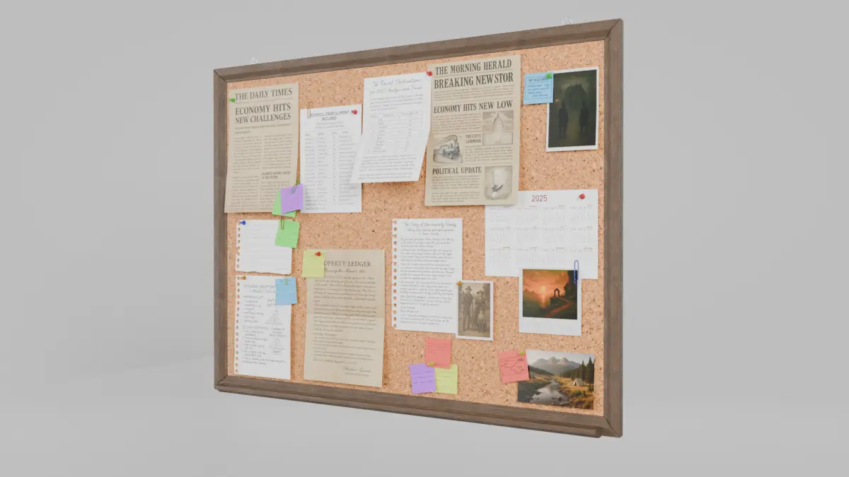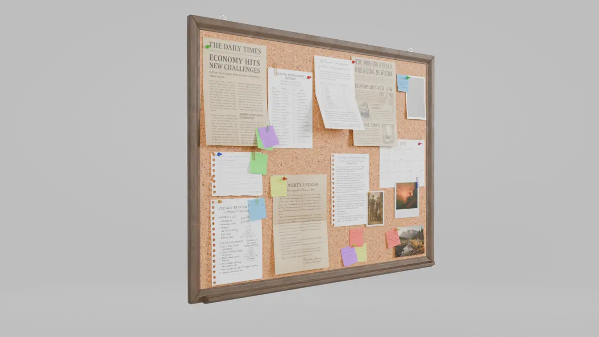 A high-quality asset featuring a fully customizable wall-mounted corkboard, complete with pre-assembled office accessories. Ideal for office scenes, classrooms, architectural visualization, and game environments.