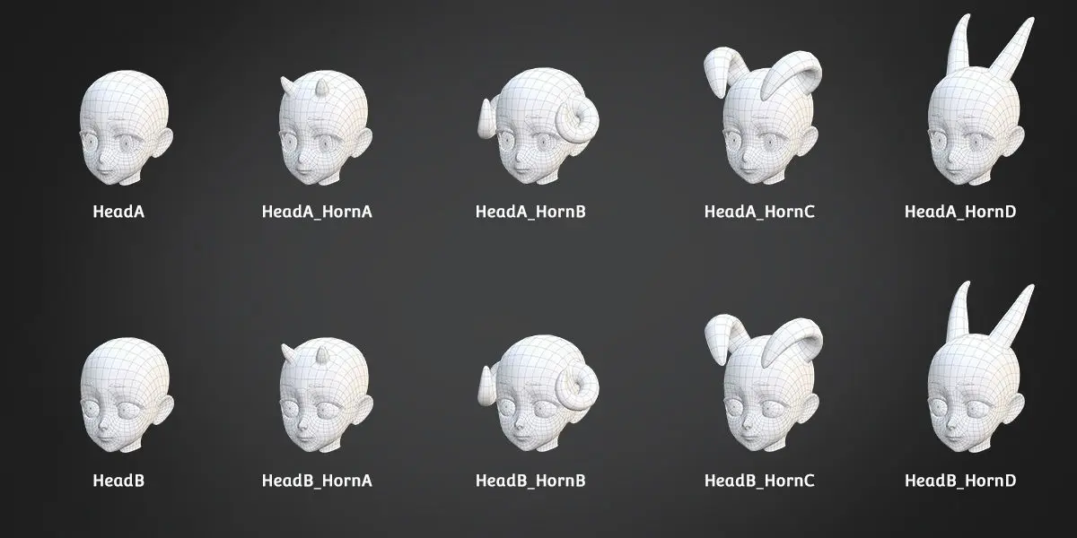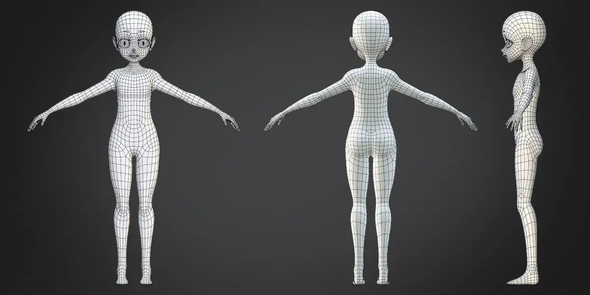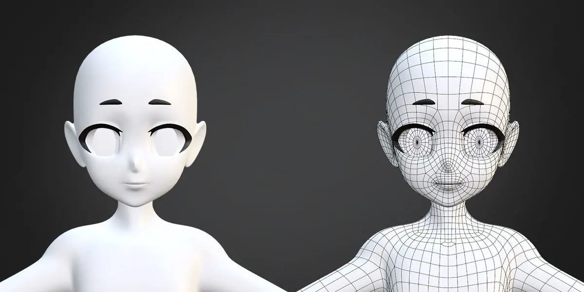 Create up to 74 child anime style character meshes mixing and matching different parts. Customize it to help increase your productivity! A good base mesh allows you to save time with good proportions and clean topology.