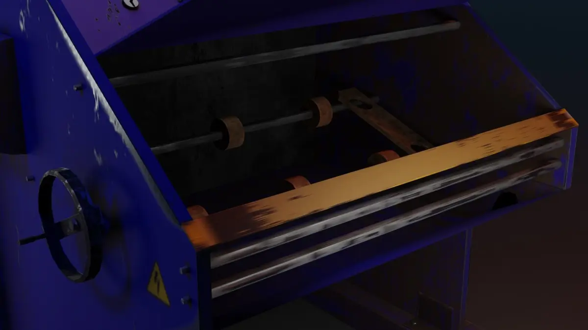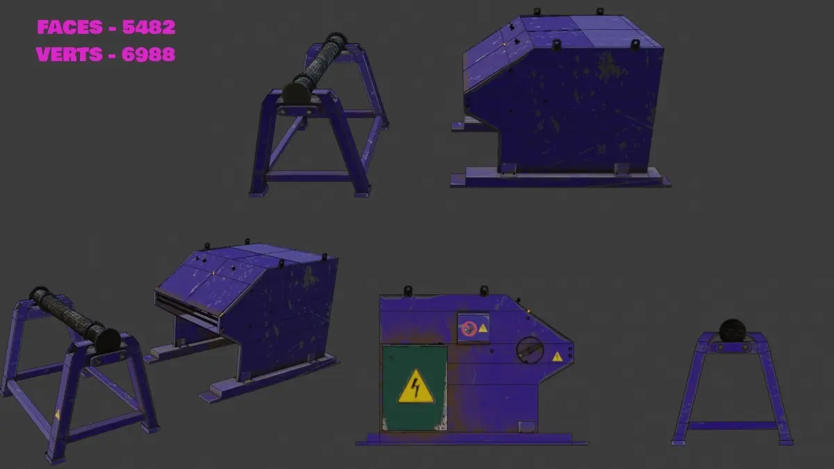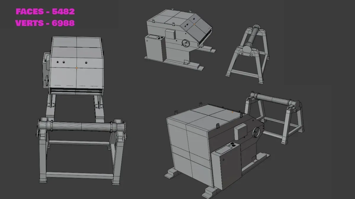 Production machine Line of cross cutting of rolled. Low poly model 5482 polygons, textures are made in substance painter.The Line Cut (SVR) metal transverse cutting machine is used for unwinding, straightening and transverse cutting of rolled metal with a thickness of 0.4 to 1.0 mm into blanks of the desired length. Good model of the machine, for the factory, with the textures of not a new machine, with a long history, with a long and difficult work. Uncoiler with a load capacity of 3,000 kg with a manual drive. The decoiler is equipped with a manual disc brake for adjusting the unwinding speed and fixing the core.