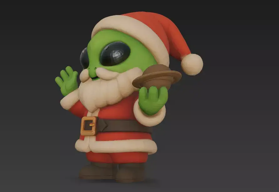 Bring a fun and festive sci-fi twist to your holiday projects with this Cute Alien Santa Claus 3D Model.This stylized character features a friendly green alien dressed in a classic Santa outfit, complete with a fluffy beard, holiday hat, boots, and a small planet accessory—perfect for adding charm and personality to your scene.