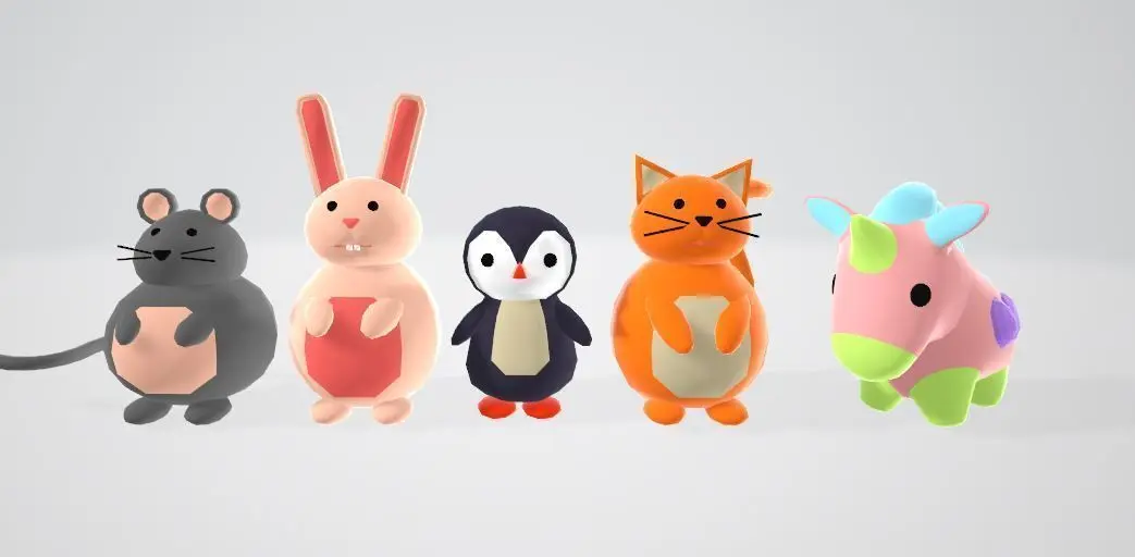 Low poly cute animals. Unicorn, Bunny, Cat, Mouse, Pinguin with materials. Fbx and obj files.