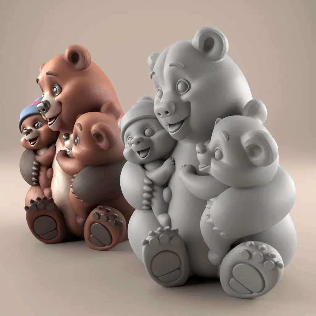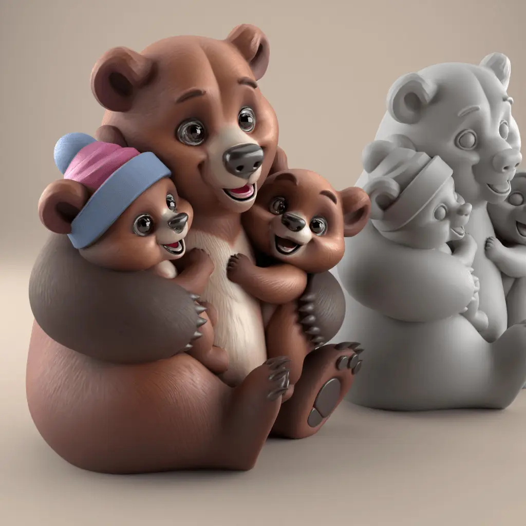 This 3D STL file features a cute bear family. It is perfect for many uses! You can 3D print it as desk decor, a paperweight, or a gift. Its adorable design brings joy to any space. Easy to print, it is great for kids’ rooms or nurseries. Make your own cute bear family today!