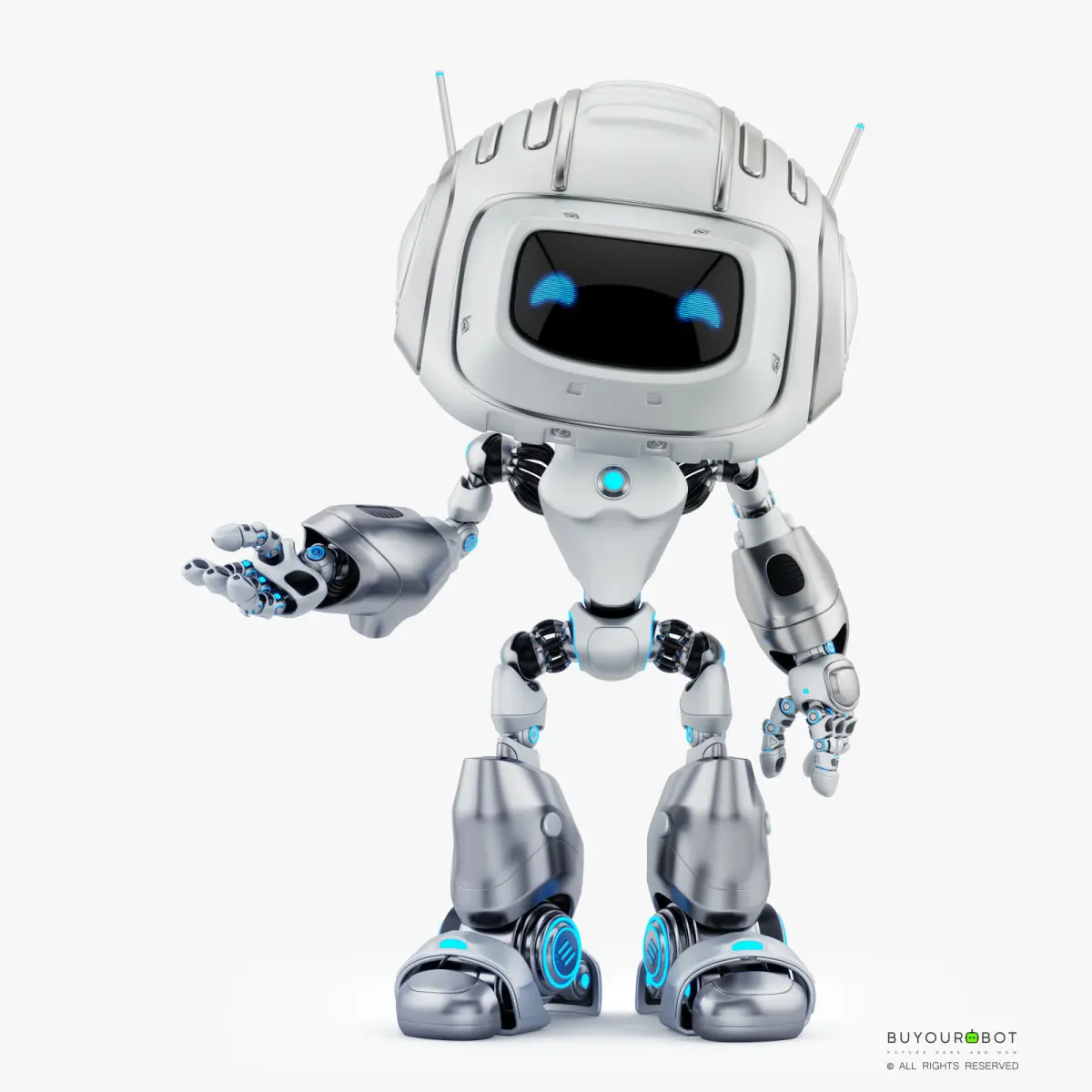 Cute robot with blue friendly digital eyes