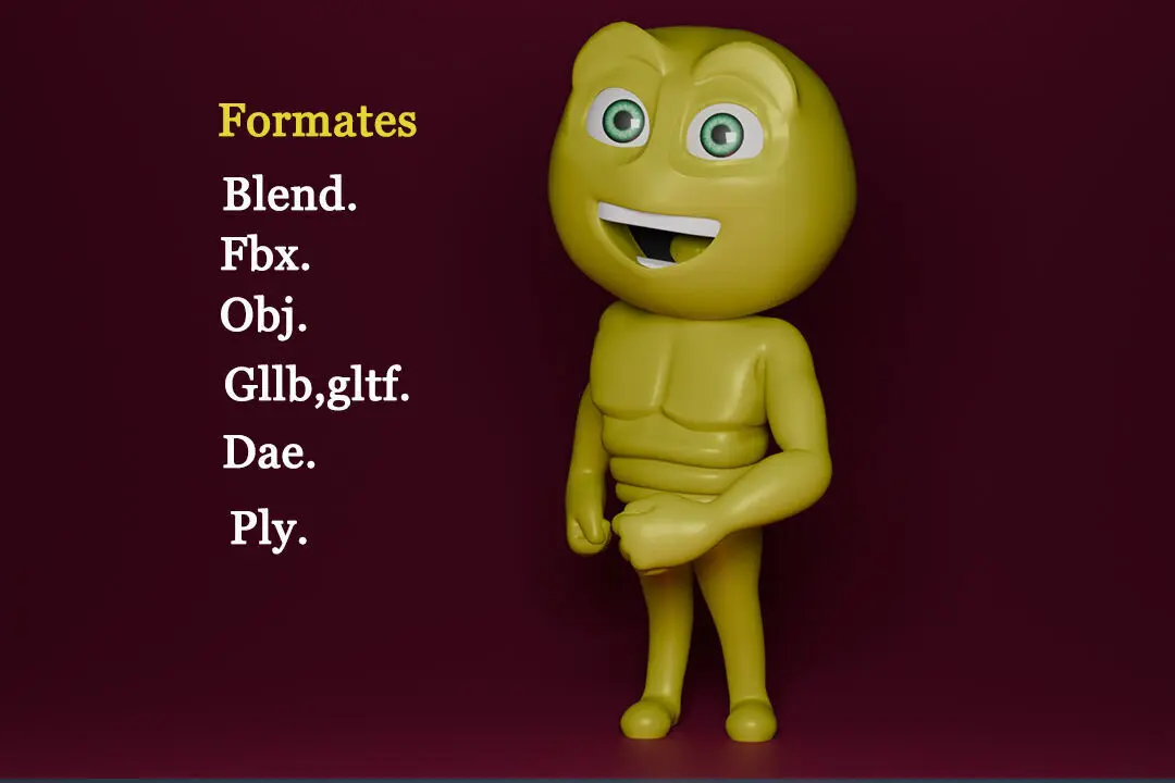 All major file formats included: .blend, .fbx, .obj, .glb, .gltf, .ply, .dae