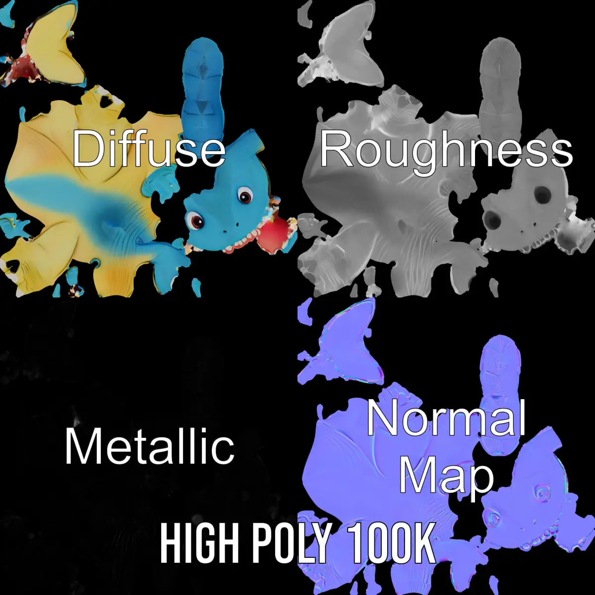 This adorable cartoon dinosaur 3D model pack is perfect for animations, games, and educational projects. Each model has 3 levels of detail: low-poly (1000 triangles for mobile), middle-poly (10,000 triangles for the environment), and high-poly (100,000 triangles), which allows for use in production rendering (such as 3ds Max, Maya, Cinema 4D, Blender, Vray/Corona/Cycles and all others), game engines (Unity and Unreal compatible), and interactive presentations, providing a choice of detail based on the LOD System principle. This model can be used in animated films, children's educational apps, or as part of a fun interactive game world. The model's textures are PBR, Diffuse, NormalMap, and reflection/roughness/metallic, which are suitable for any modern rendering engine. All models are accurately unwrapped and have no overlapping UV. All textures are 4096*4096 in size. The first image is the reference used for creating the 3D model. It is important to carefully evaluate the quality of the model by examining the preview images that display the topology and polygonal mesh. These previews (WIRE and WEB 3D Preview) clearly demonstrate how accurately the model matches the original reference and how well the geometry has been executed. If you liked the model, please like it and leave a comment.