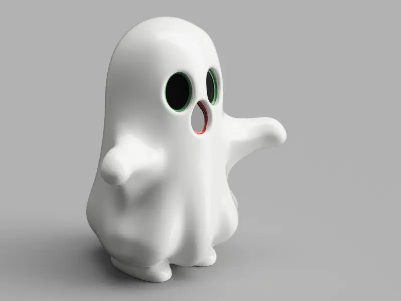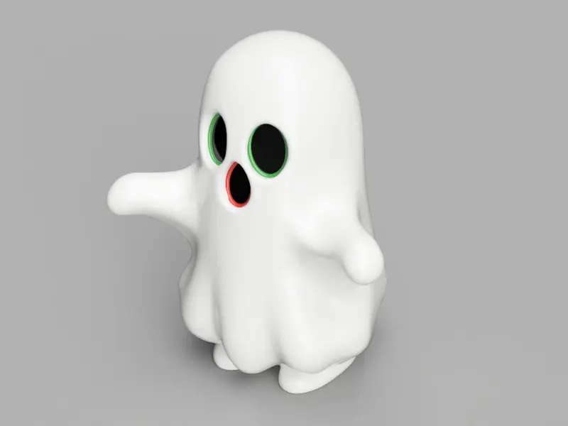 This 3D model features a cute and spooky cartoon ghost with a minimalistic design, perfect for Halloween decorations or as a fun collectible. The ghost has expressive wide eyes and an open mouth, giving it a playful yet eerie appearance. Ideal for themed projects or festive displays.