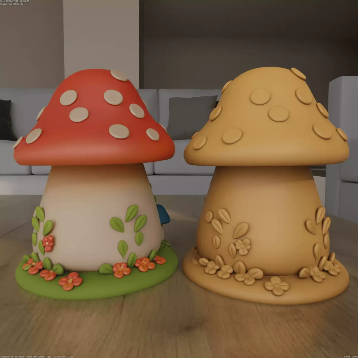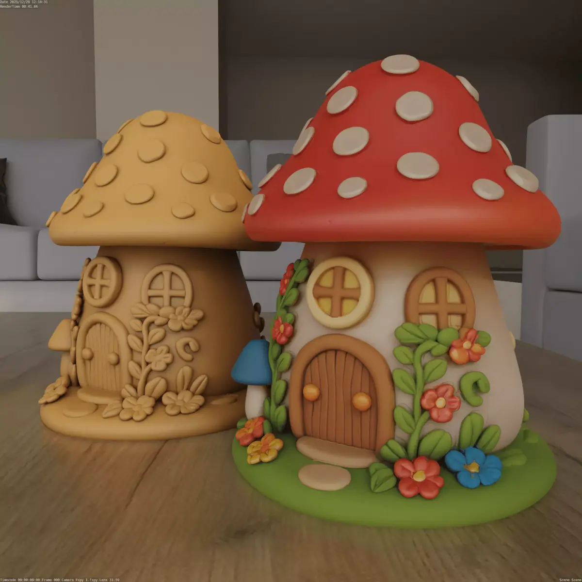 Bring a little magic to your home with this cute mushroom house 3D model. It features a soft clay look with a red roof, small flowers, and a wooden door. This STL file is ready to print and is perfect for decoration or painting fun.