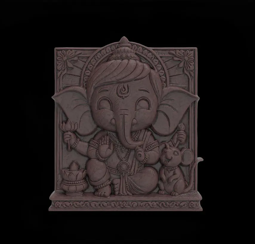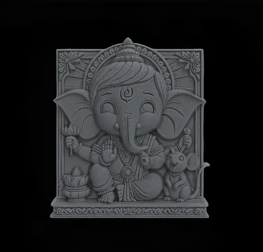 Key Features:Intricate Detailing: Showcasing Ganesha with delightful facial expressions, ornate jewelry, and symbolic elements like a lotus, diya (lamp), and his loyal mouse companion.High-Resolution Design: The fine textures, patterns, and decorative elements ensure a smooth and detailed 3D print.Print-Ready File: Optimized for both FDM and resin 3D printers with minimal support requirements.Versatile Usage: Ideal as wall decor, festival decorations, spiritual gifts, or sacred art displays.Scalable Design: Easily resized to suit various project sizes without losing intricate detail.Recommended Print Settings:Layer Height: 0.1mm for fine detailsInfill: 15-20% for strength and stabilitySupports: Recommended for complex areasMaterial Compatibility: PLA, ABS, PETG, or resin materialsFile Information:Format: .STLModel Dimensions: Customizable to fit your desired size