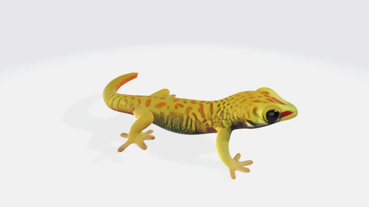 This is a highly detailed, realistic 3D model of a gecko lizard, ideal for wildlife scenes, educational visualizations, and high-end animations. The model captures the natural anatomy and texture of a real gecko with great accuracy, featuring lifelike proportions and a carefully crafted surface structure.