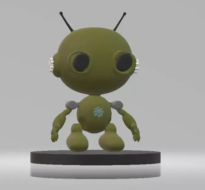 This charming green robot character features large, expressive eyes and small mechanical features, such as metallic shoulder and knee joints. It has a friendly and simplistic design, making it both adorable and functional as a collectible. The robot’s design is complemented by a flower-shaped chest decoration, adding a unique touch to its look.Ideal for sci-fi lovers or fans of cute robot designs, this model can be 3D printed in various colors and materials. It’s perfect as a decorative item, a gift for robot enthusiasts, or as part of a quirky collection.