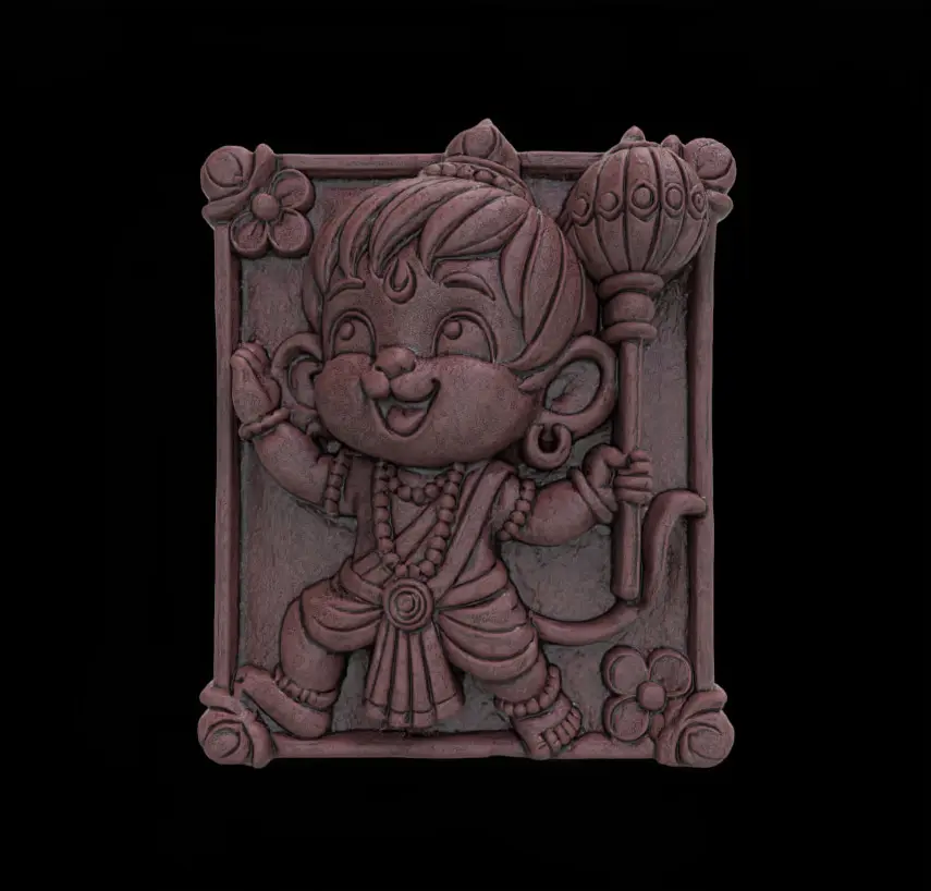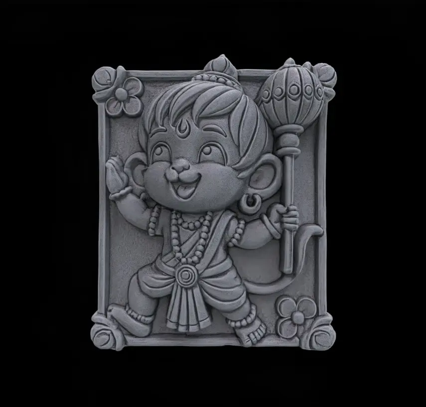 This 3D bas-relief model of Baby Hanuman is intricately designed for CNC carving and 3D printing. Featuring Baby Hanuman in a playful yet powerful pose, this model captures his divine charm with detailed ornaments, expressive features, and symbolic elements like his iconic mace (Gada). The surrounding decorative frame adds elegance, making it ideal for spiritual decor, religious gifts, or sacred artwork. Perfect for wood, resin, or metal carving projects, this design is suitable for home altars, temples, and cultural displays.