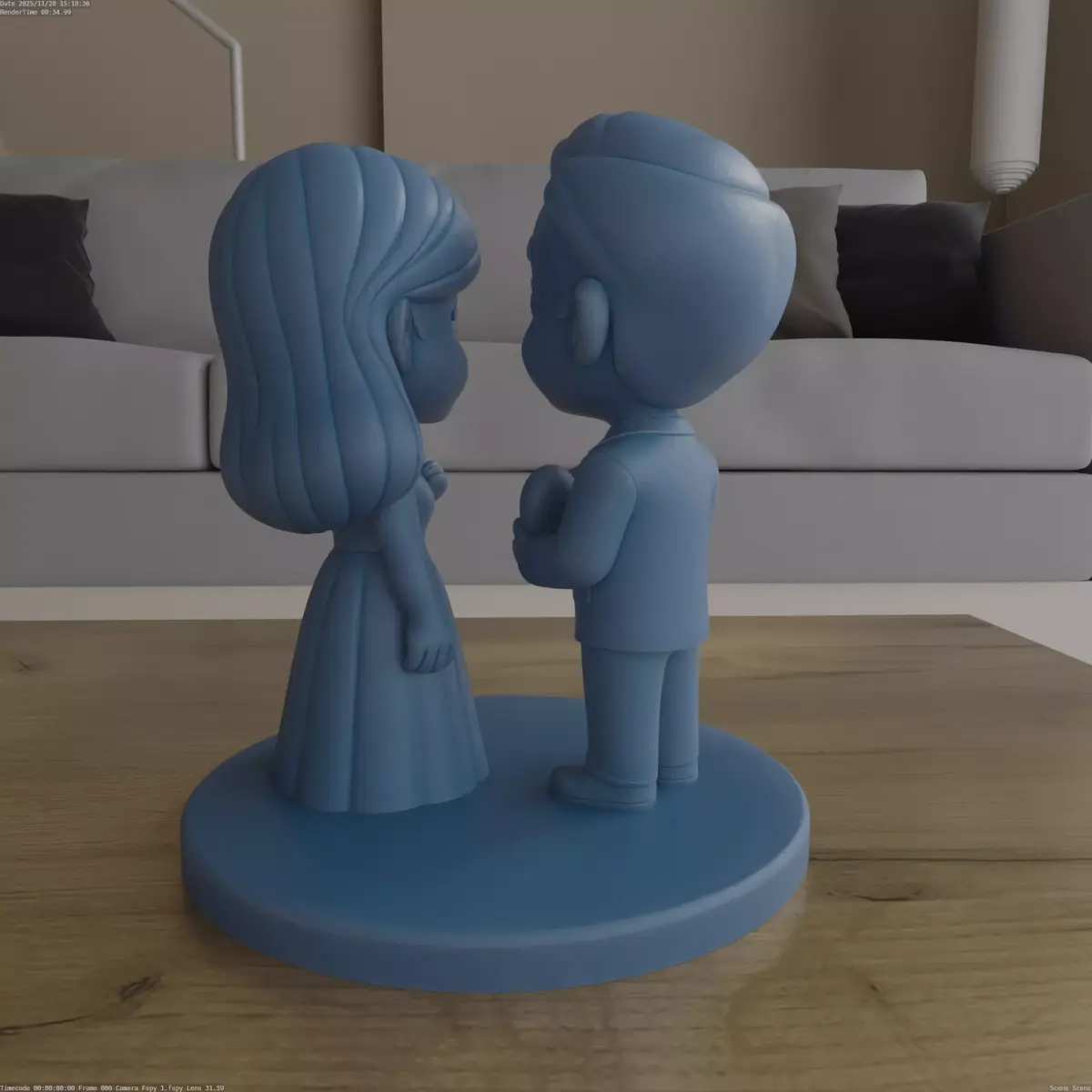 Assembly InstructionsThe model features a groom and bride with a separate round base. All parts are printed individually and can be easily assembled using glue after printing