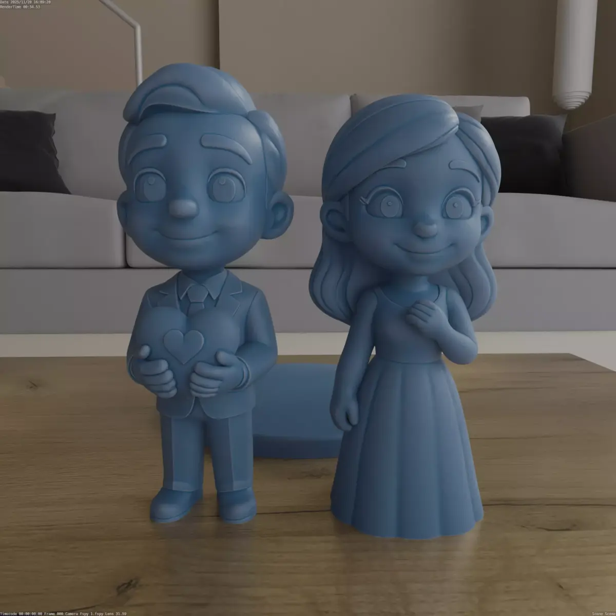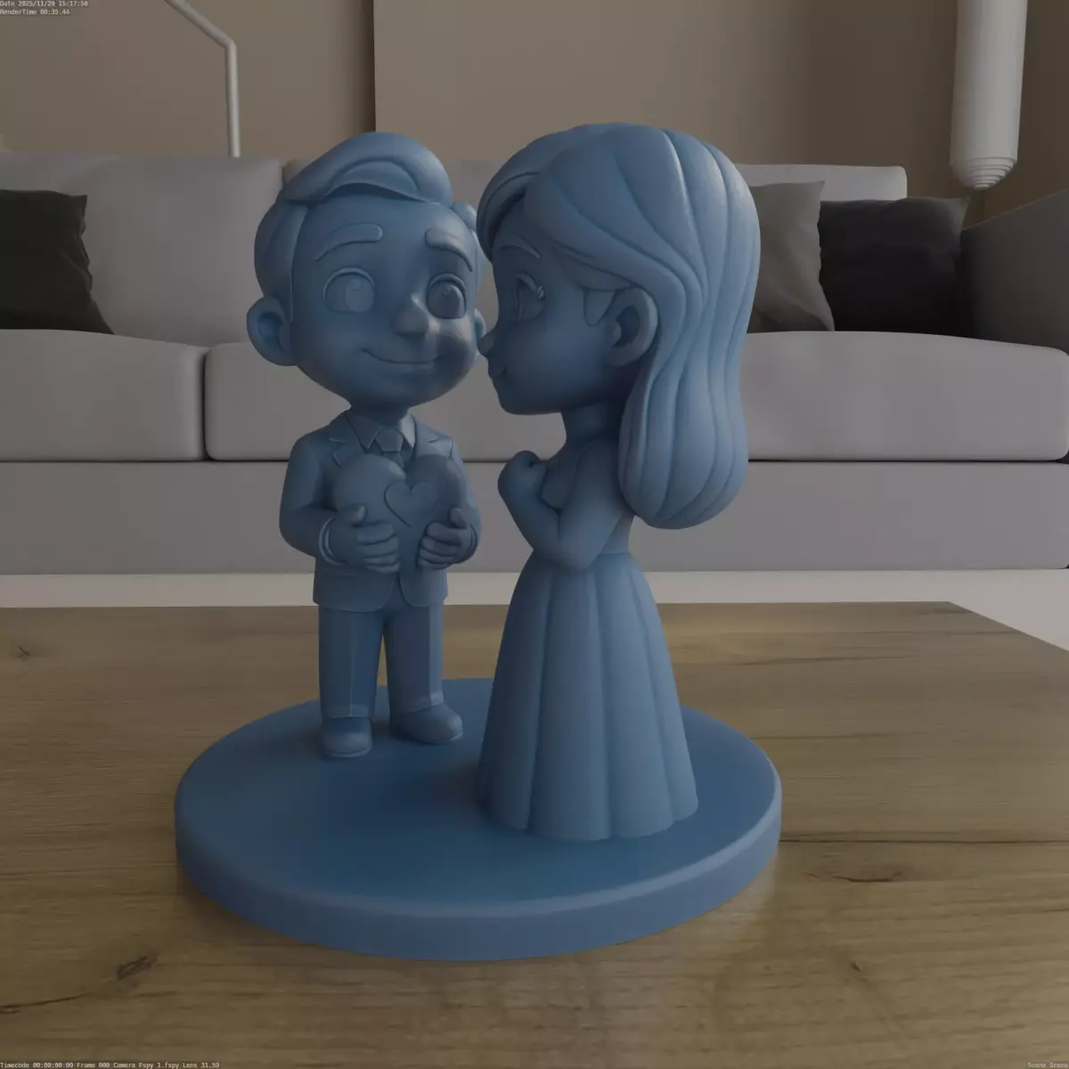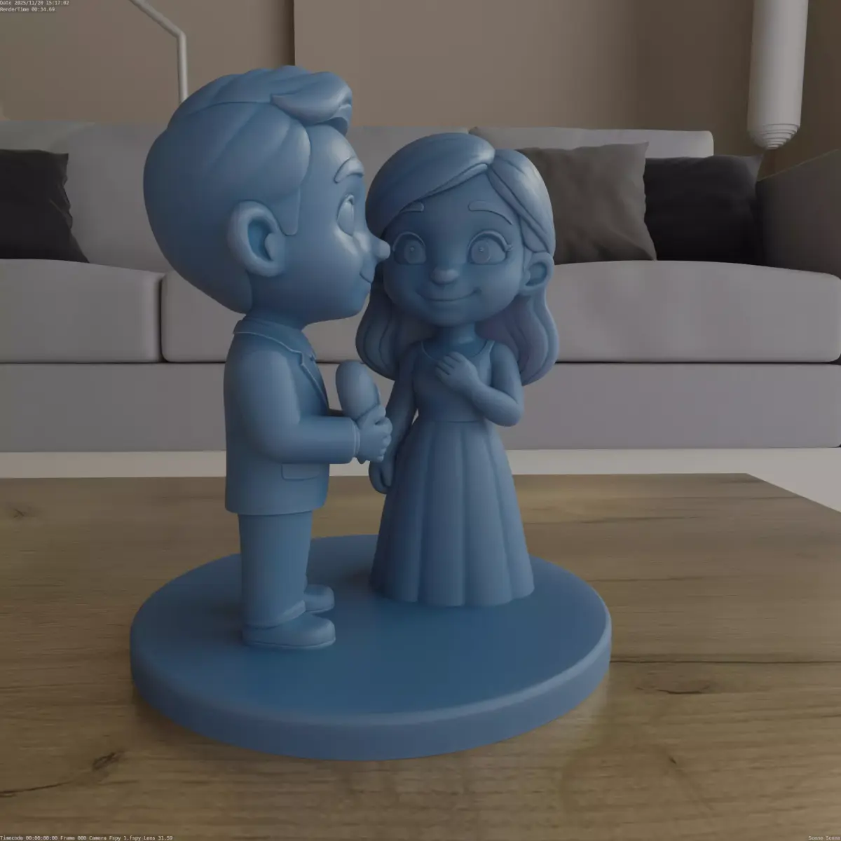 Design ConceptThis charming miniature statue captures a moment of affection between two cartoon-style characters, characterized by exaggerated head proportions and simplified features for enhanced expressiveness.