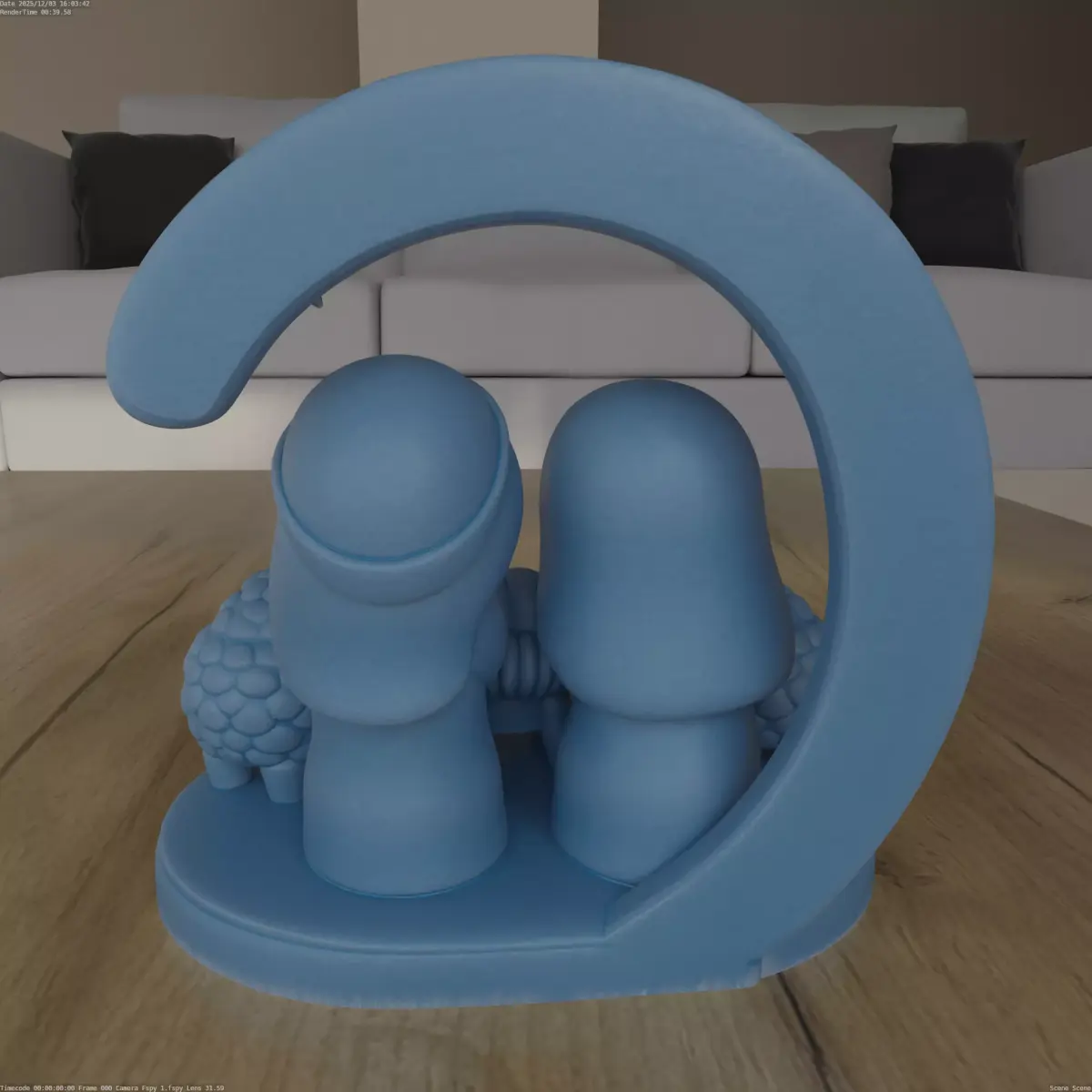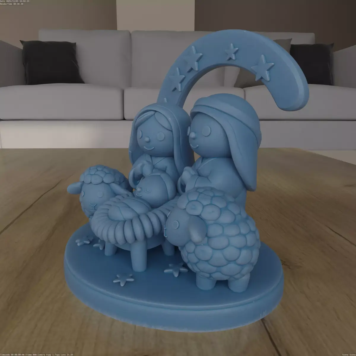 Design ConceptThis piece captures the charm of the nativity scene with a cute and minimalist design. The rounded features enhance its playful nature, while the crescent moon adds a whimsical touch.