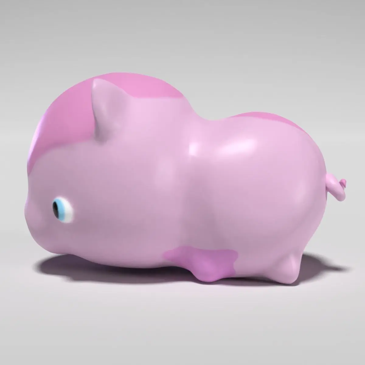 Semi low-poly, pig with one texture file for the body color. Only the .blend file includes the camera, stage and lighting in the rendered image.The stated poly count is based on the low-poly, Blender model without the subdivision surface.