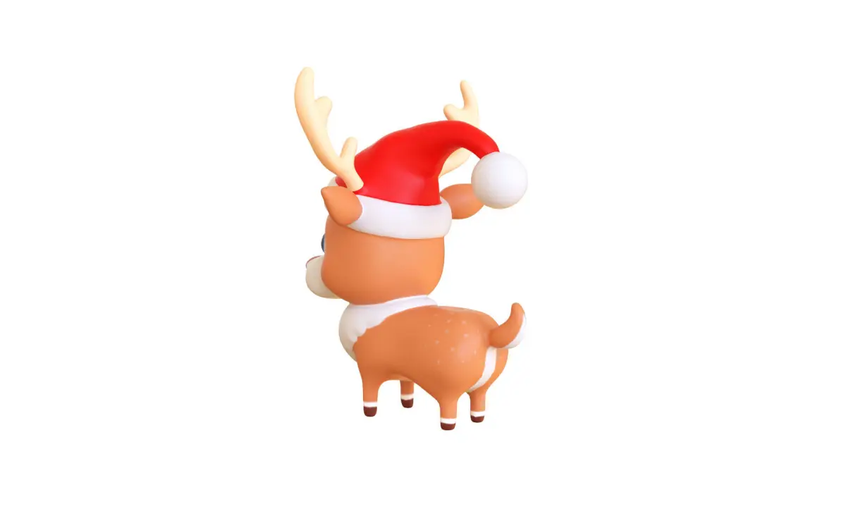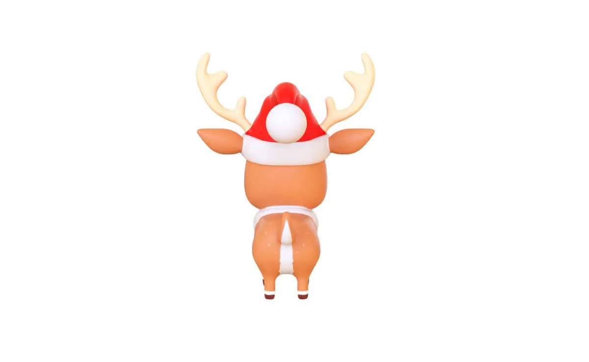 Cute Reindeer Wearing Santa Hat 3D Model - Christmas Decor - Low Poly & High Detail 3D Asset