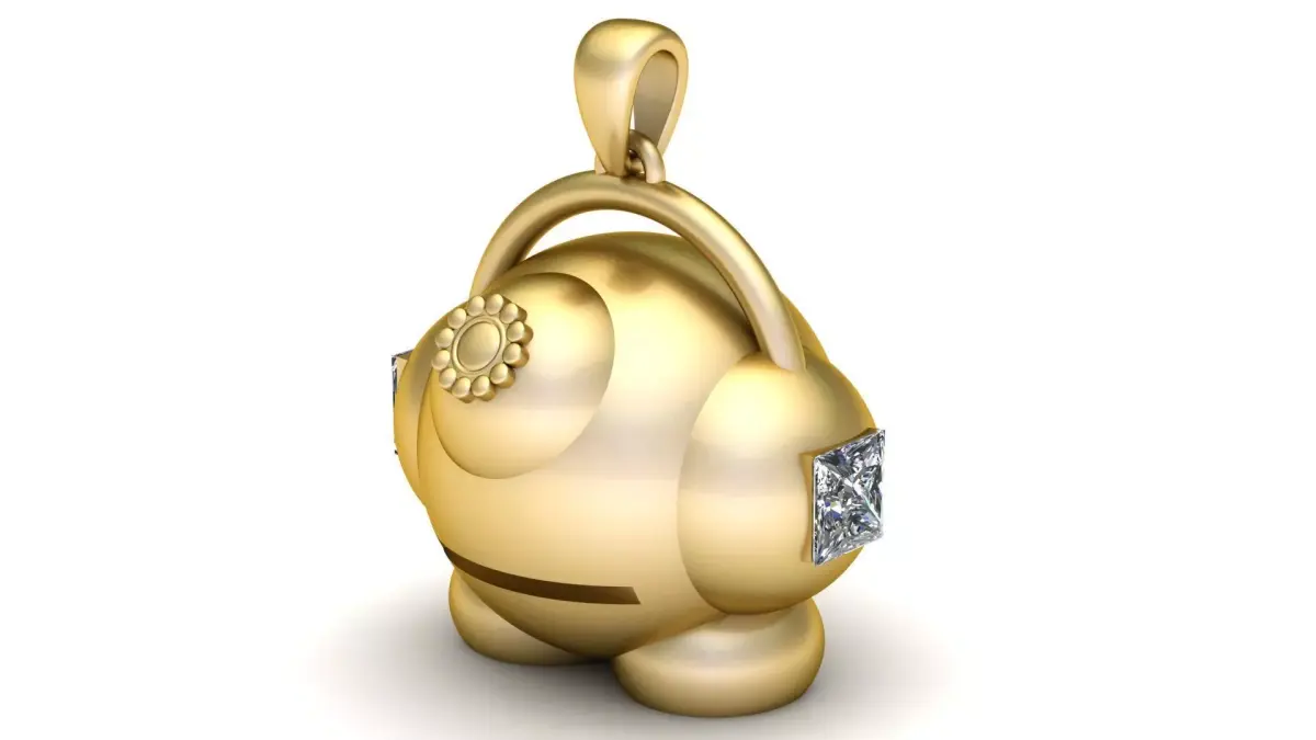 This charming 3D printable pendant features a stylized robot or sci-fi helmet character, perfect for fans of futuristic fashion and playful jewelry. Designed with a rounded, compact shape, this pendant includes princess-cut gemstone-style eyes and subtle mechanical detailing on the side, adding personality and sparkle.
