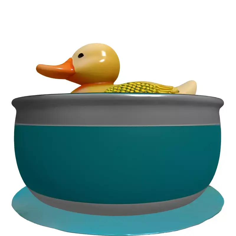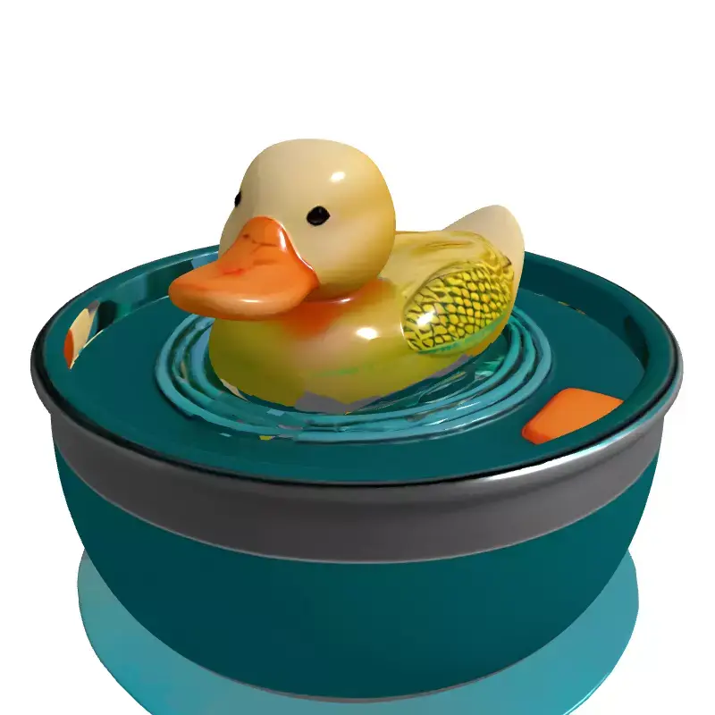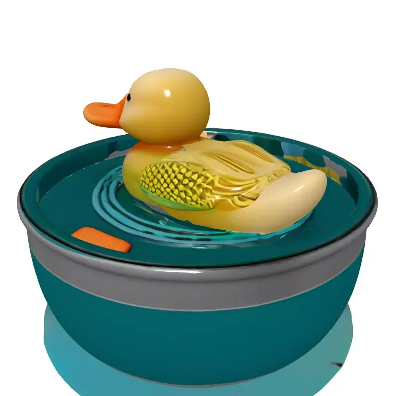 This charming 3D model presents a classic yellow rubber duck playfully floating in a transparent glass bowl filled with vibrant blue water. The scene includes subtle ripples on the water surface and two stylized orange elements, enhancing its whimsical appeal. This versatile asset is ideal for a wide range of digital applications, from enhancing game environments as a decorative or interactive element to adding character to architectural visualizations in bathrooms or children's rooms. It's also perfectly suited for engaging augmented reality (AR) experiences, captivating digital art compositions, or educational content. The model features clean, optimized topology, ensuring efficient real-time rendering in game engines and AR/VR platforms, while also being suitable for high-quality static renderings and animations. It comes fully UV unwrapped with PBR textures, guaranteeing realistic material representation and seamless integration into various rendering pipelines. With support for multiple formats including GLB, OBJ, FBX, USD, and DAE, this model offers maximum compatibility. It is designed to be easily incorporated into any project, offering both visual charm and technical flexibility. Additionally, the clean mesh allows for easy customization or subdivision if higher detail is desired, making it a highly adaptable asset for any creative endeavor.