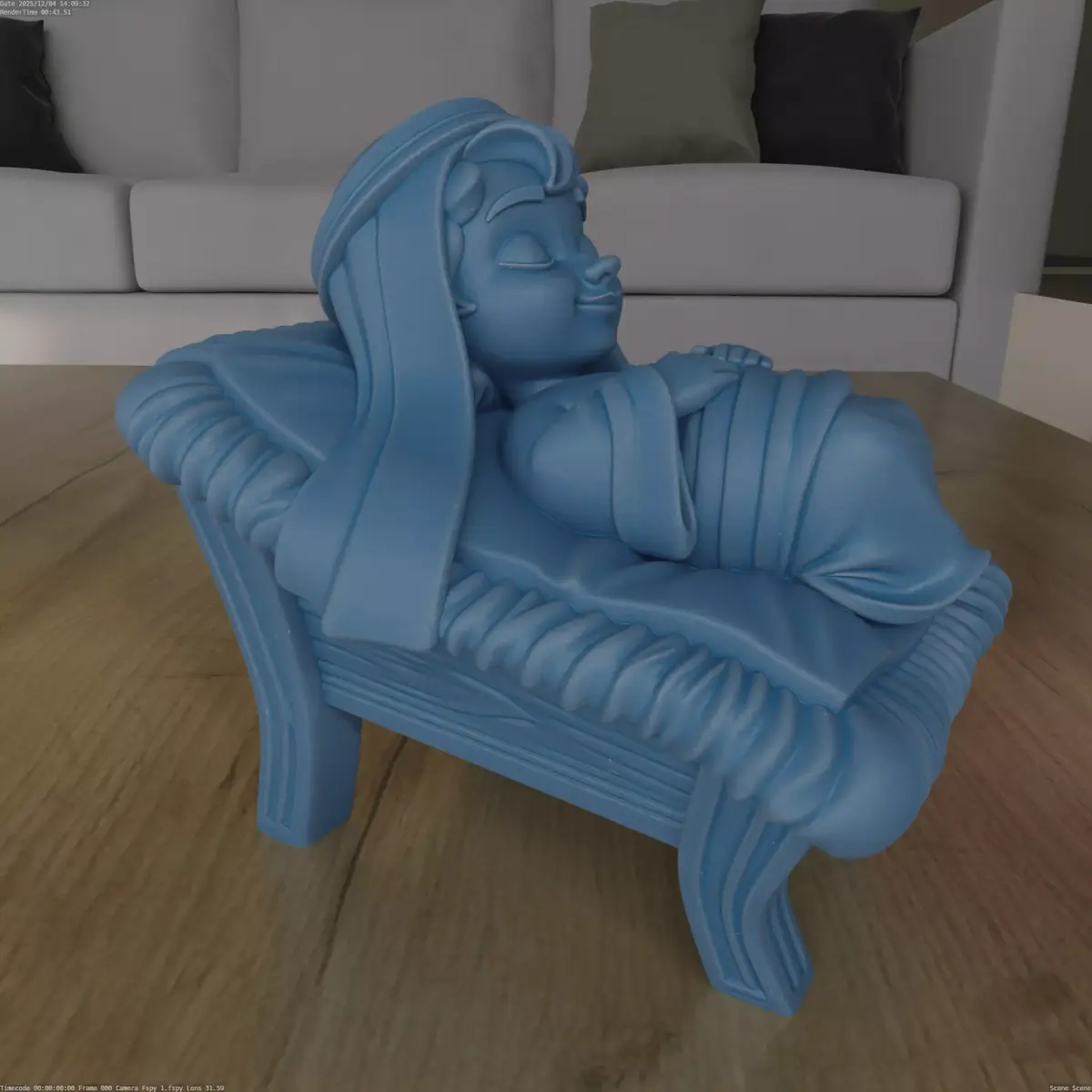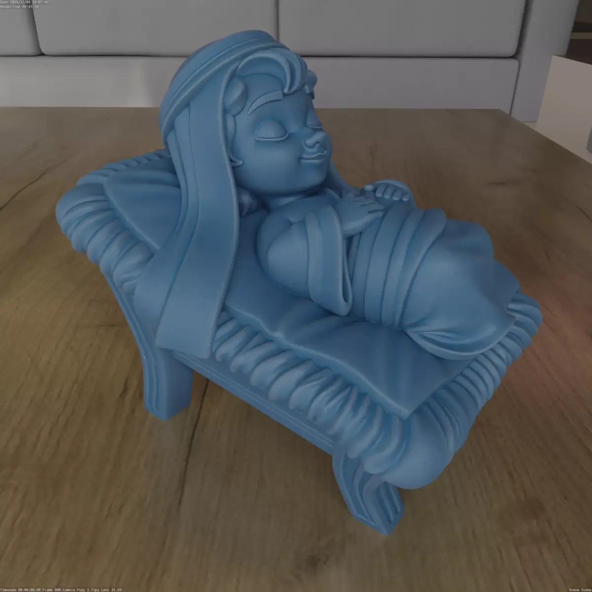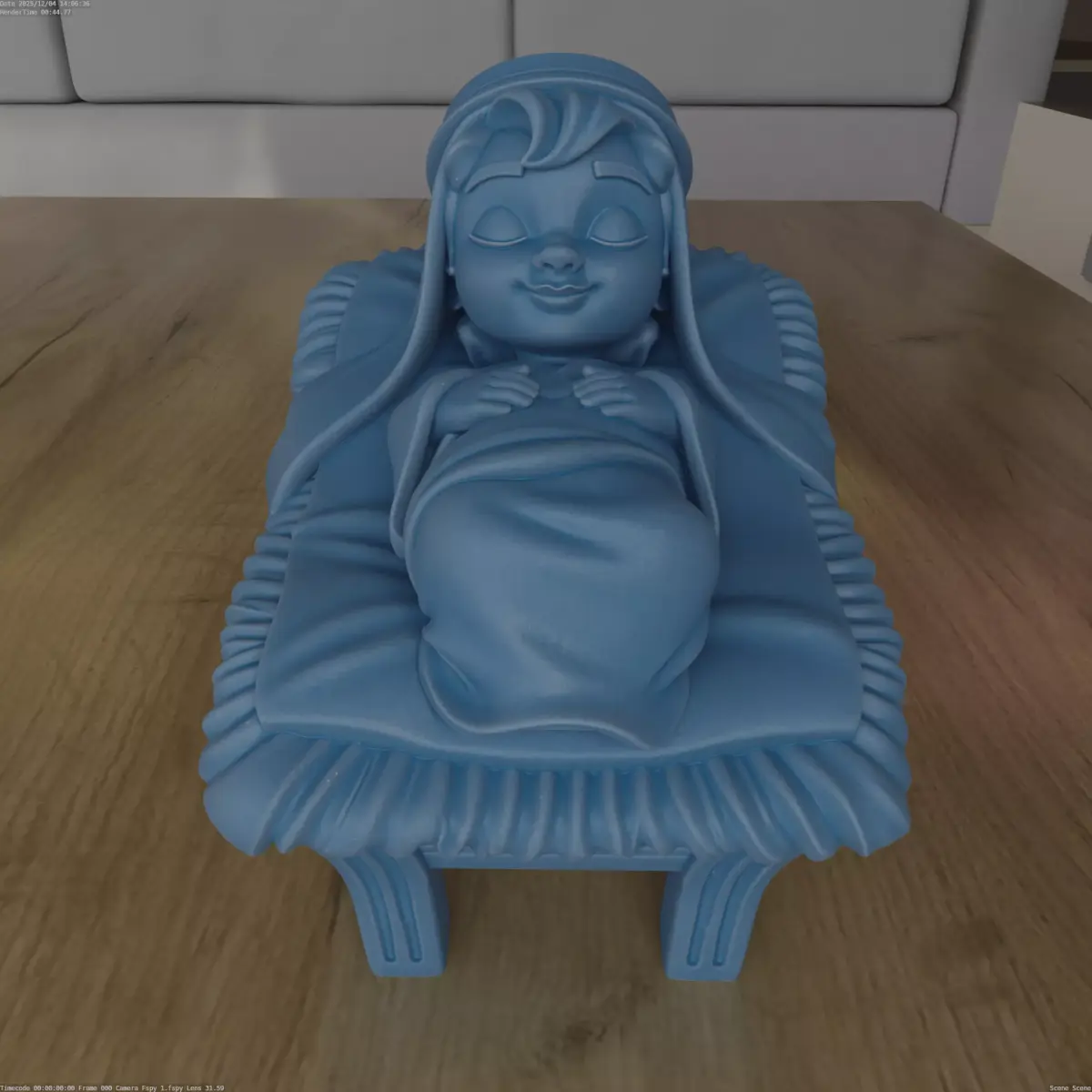 Design ConceptThis piece captures the peaceful image of Baby Jesus sleeping in a manger. It's designed with intricate details to enhance any religious or festive setting.