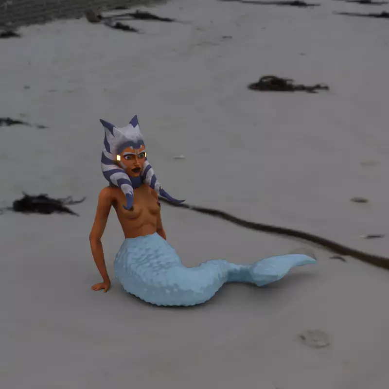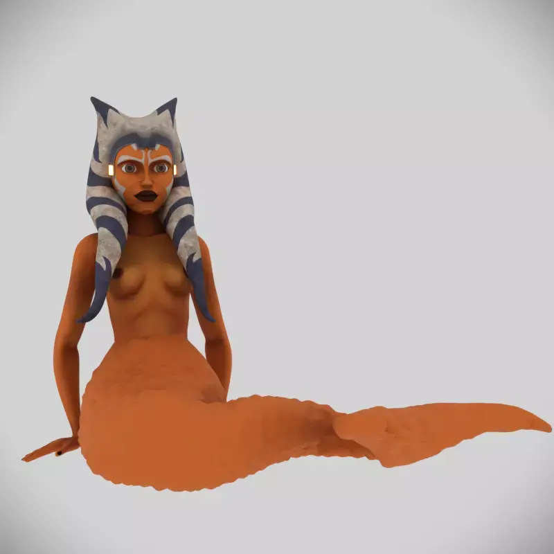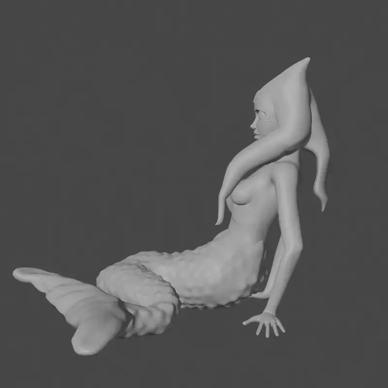 This stylized Cute Space Alien Mermaid combines a cosmic sci-fi look with classic mermaid elegance. She features a vibrant orange alien complexion, a smooth scaled tail, and unique head-tendrils that give her an unmistakably extraterrestrial charm. Perfect for fantasy art, character design, or collectible 3D model concepts.