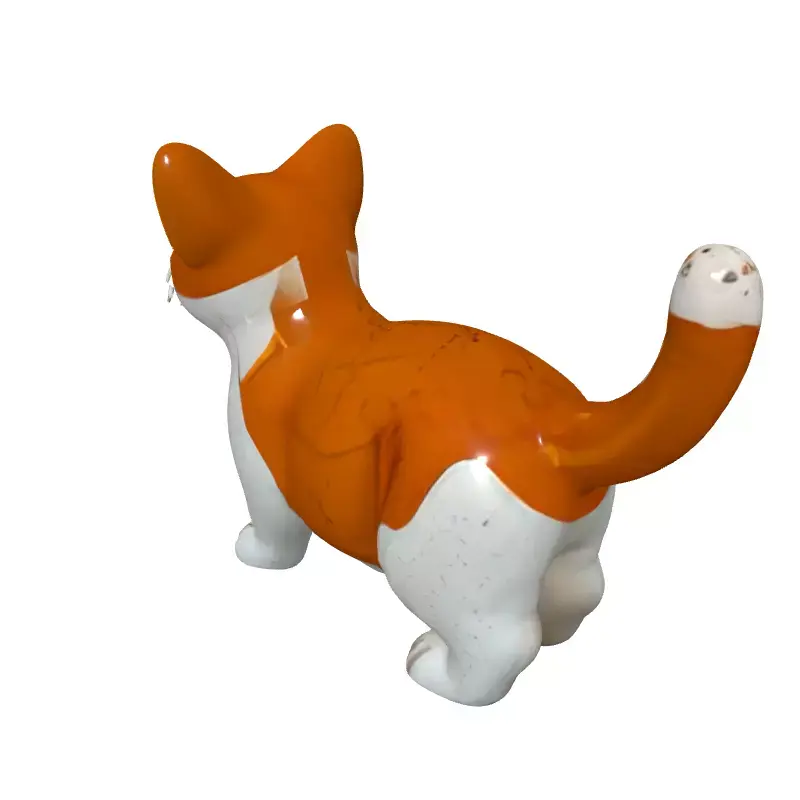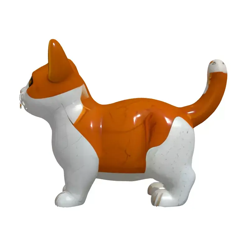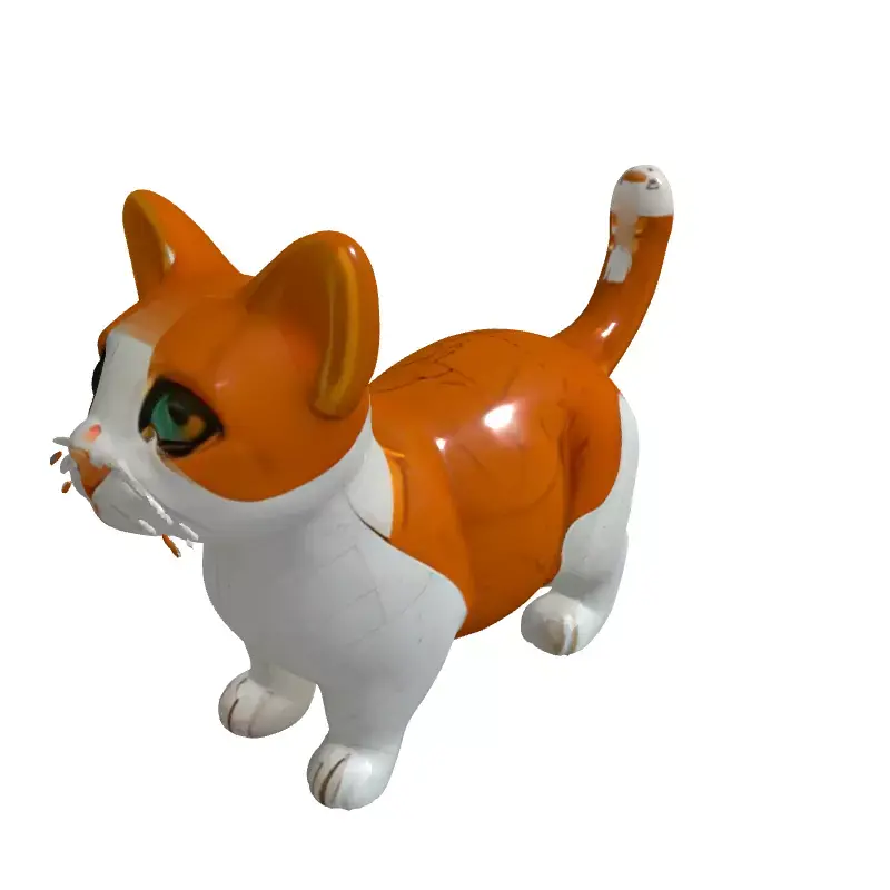 This charming 3D model presents a stylized cat figurine, meticulously crafted with a delightful, cartoonish aesthetic. The model features a distinctive orange and white coat, enhanced by a realistic cracked paint texture that gives it an antique, ceramic, or well-loved toy appearance. With its endearing large eyes and playful stance, this model is perfectly suited for a wide array of digital projects. It can serve as an engaging prop in casual game environments, a decorative element in AR/VR applications, or a whimsical subject for digital art and animation. The model is optimized for efficient performance, making it an excellent asset for real-time applications such as mobile games and interactive experiences, while also maintaining sufficient detail for high-quality static renderings. Its clean topology ensures smooth deformations for animation purposes and is ready for subdivision if a higher poly count is desired for close-up shots or cinematic renders. The included PBR textures faithfully capture the unique cracked surface and vibrant colors, providing visual richness across various lighting conditions. Furthermore, the model is fully UV unwrapped for easy texture customization and integration. It is designed to be versatile, supporting common 3D file formats such as GLB, OBJ, FBX, USD, and STL, making it suitable for 3D printing as a charming collectible or decorative piece. This cat model is a versatile addition to any asset library, bringing a touch of cuteness and character to your scenes.