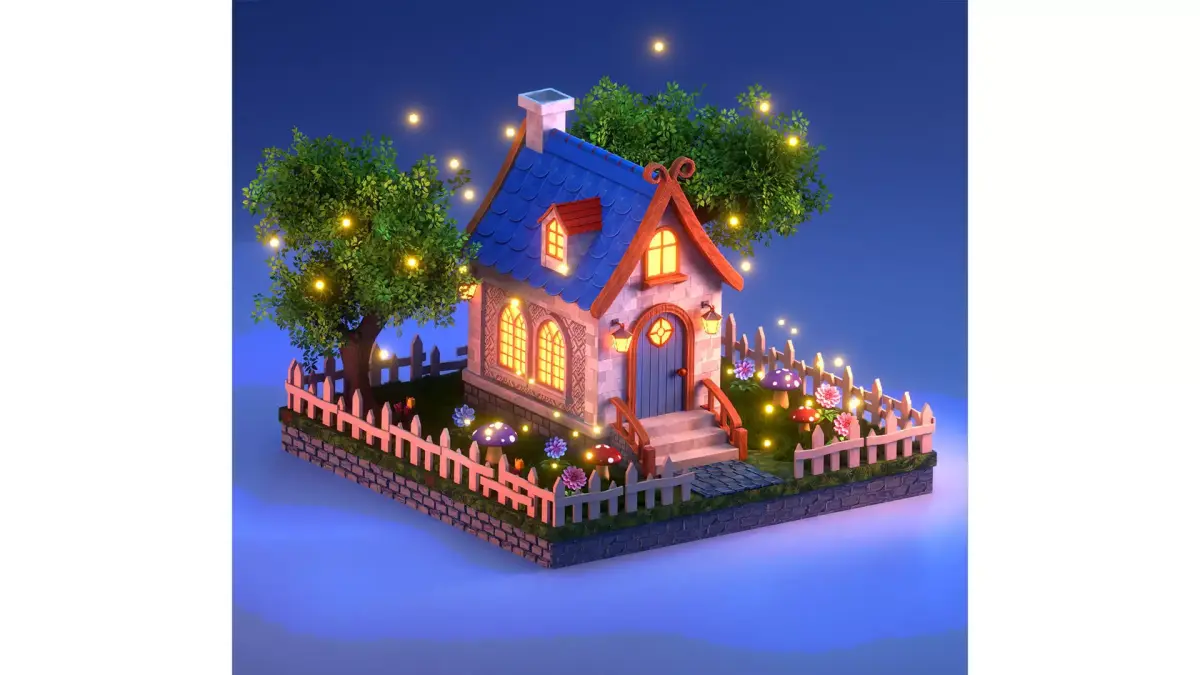 This stylized Cute House Environment was completely crafted from scratch in Blender. Every element, including the trees, flowers, and house, is hand-modeled to bring a playful and charming feel to your project.