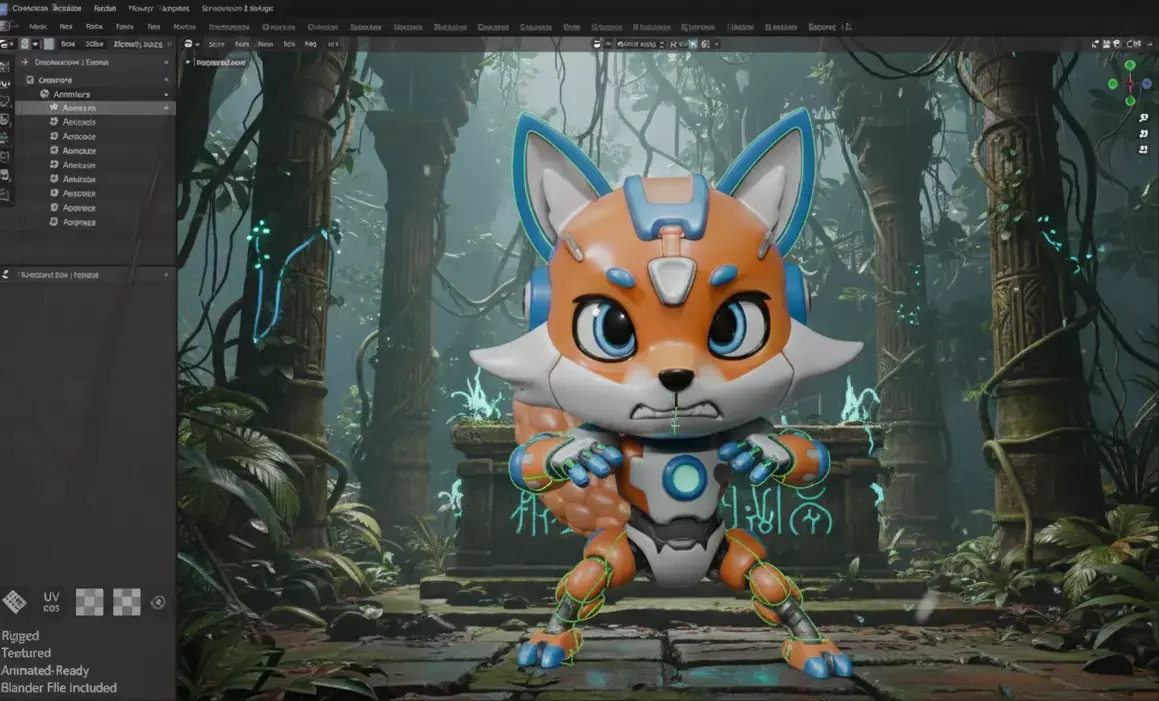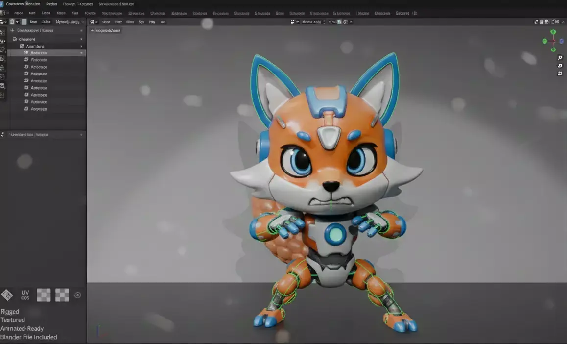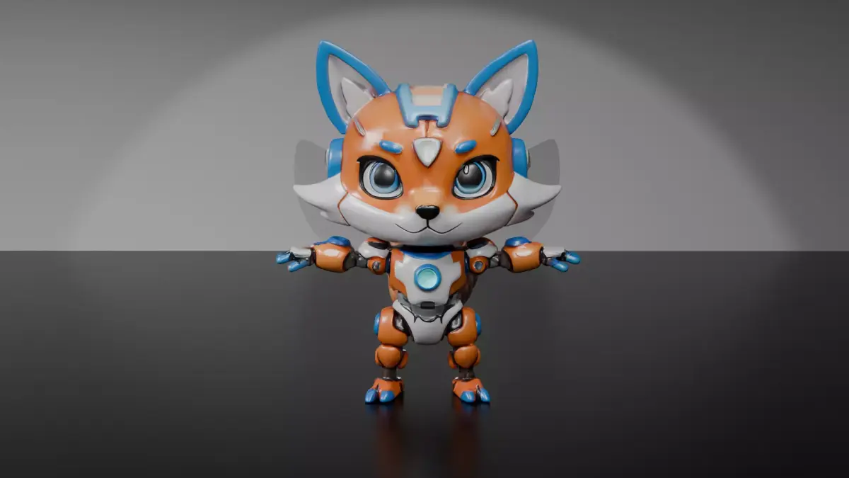 Here is a high-quality 3D model of a cute stylized robot fox. This character features a futuristic cyborg design with a mix of organic and mechanical parts, perfect for sci-fi games, mobile apps, VR/AR projects, or 3D printing as a toy/figurine.